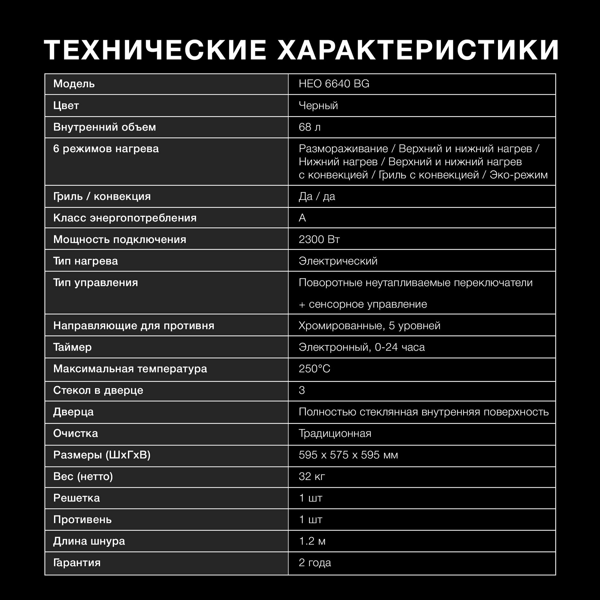 Электрический духовой шкаф Hyundai HEO 6640 BG, черный