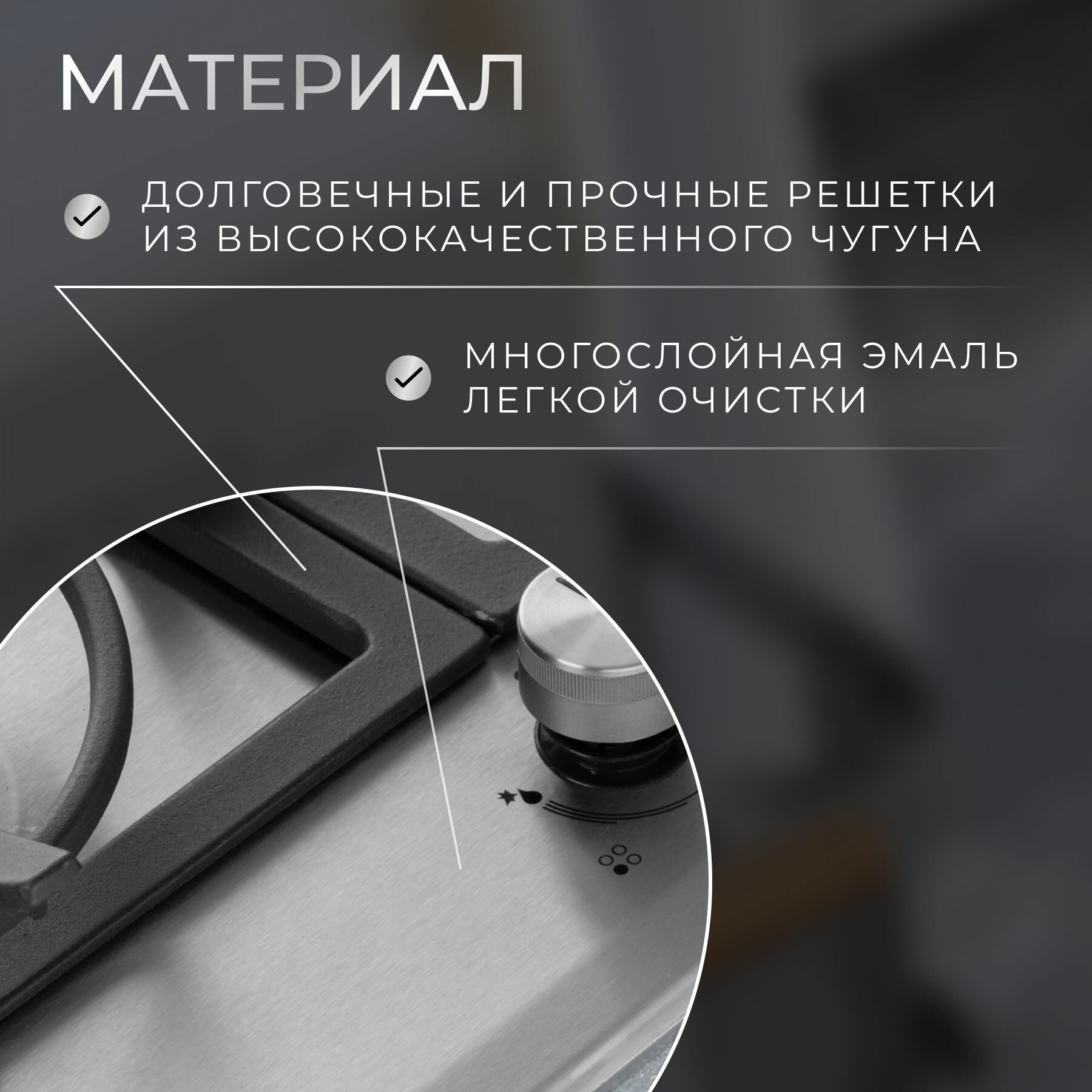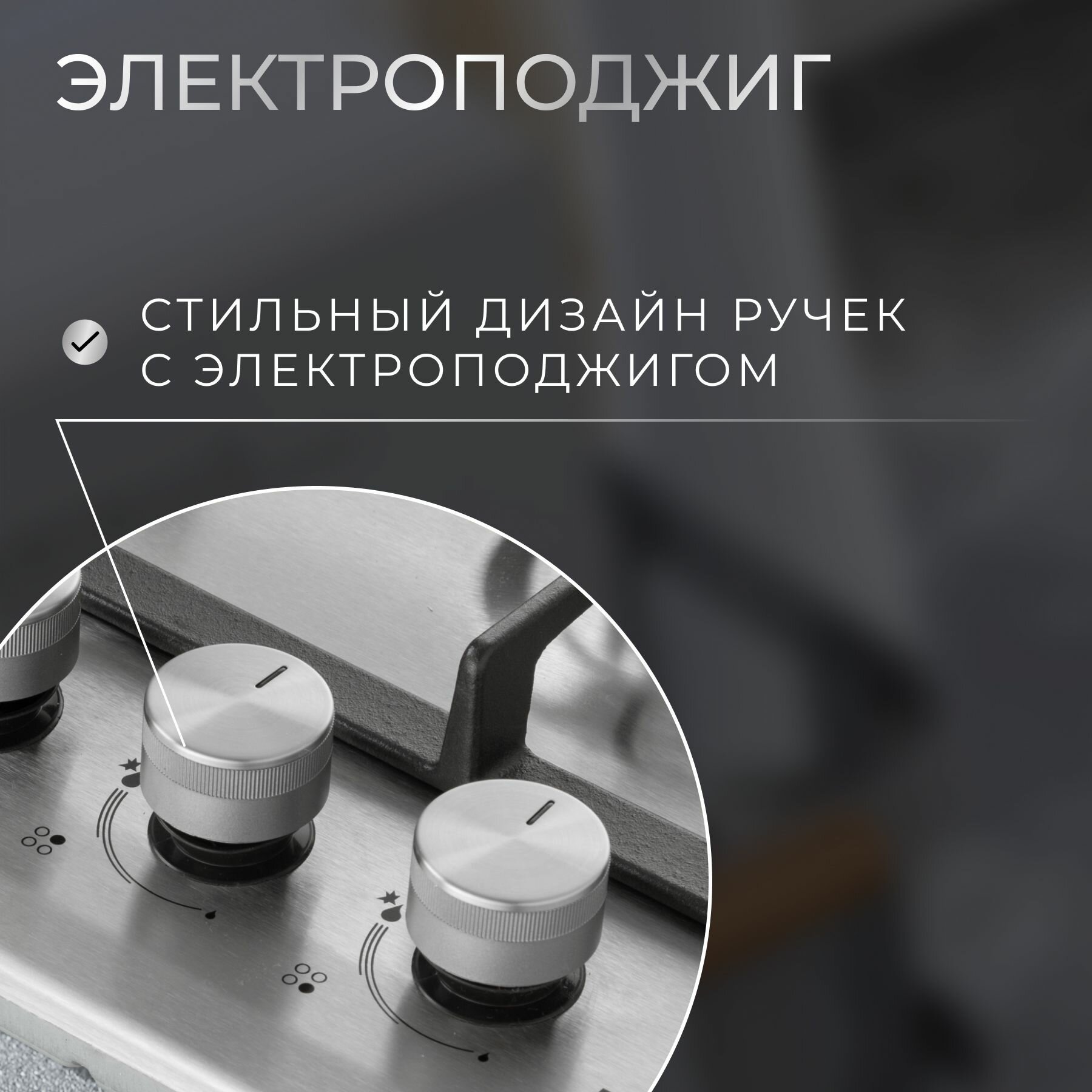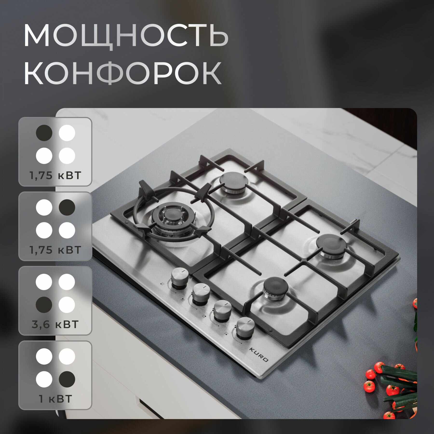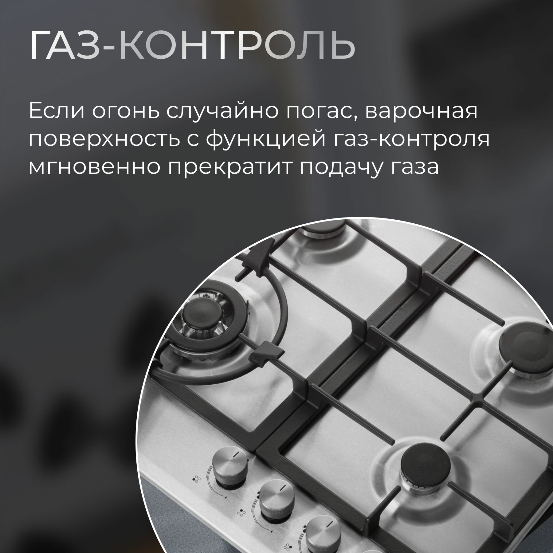Газовая встраиваемая варочная панель 60 см KURO KHG 641 IX, газ-контроль, электроподжиг, WOK-конфорка, чугунные решетки, серебристая интересное:
