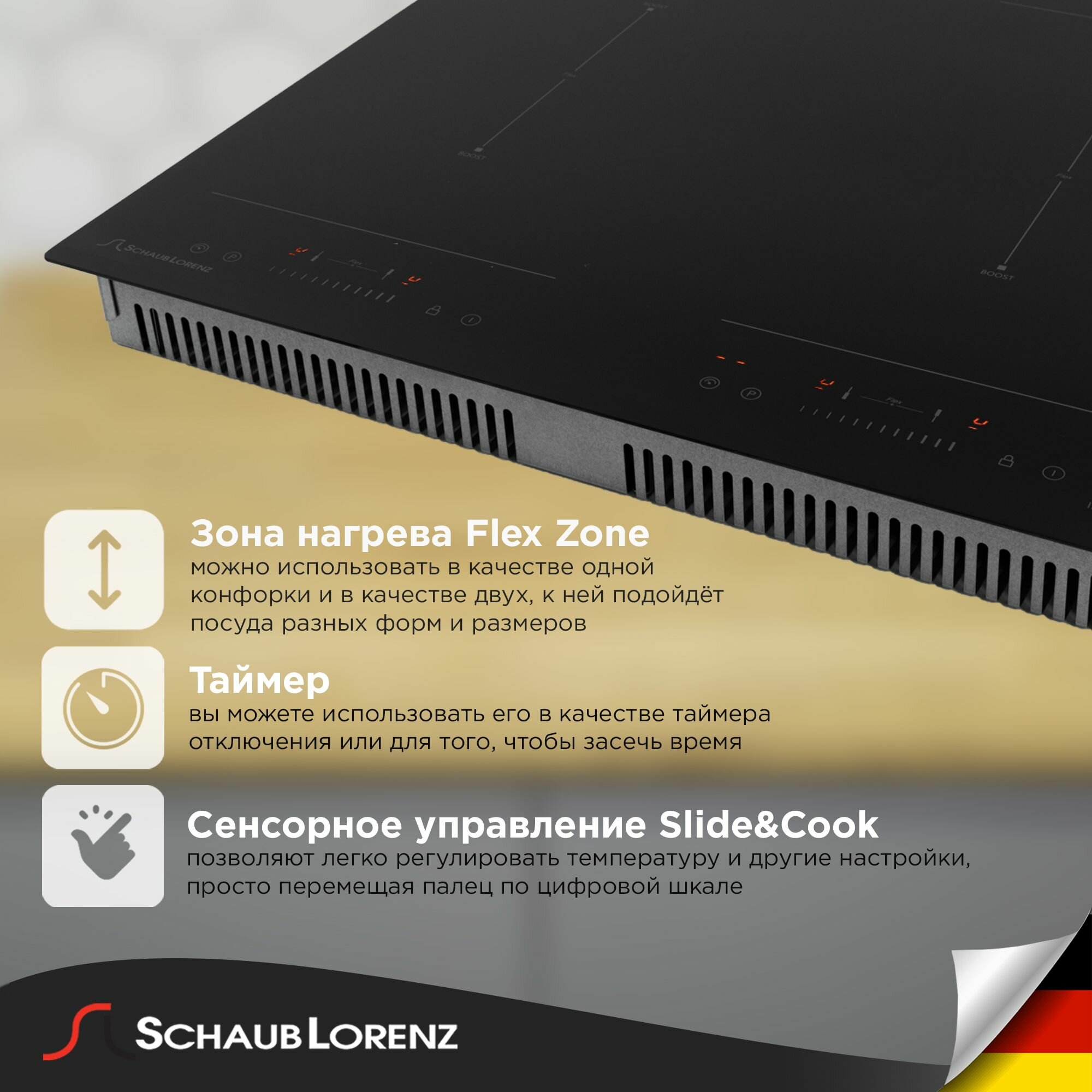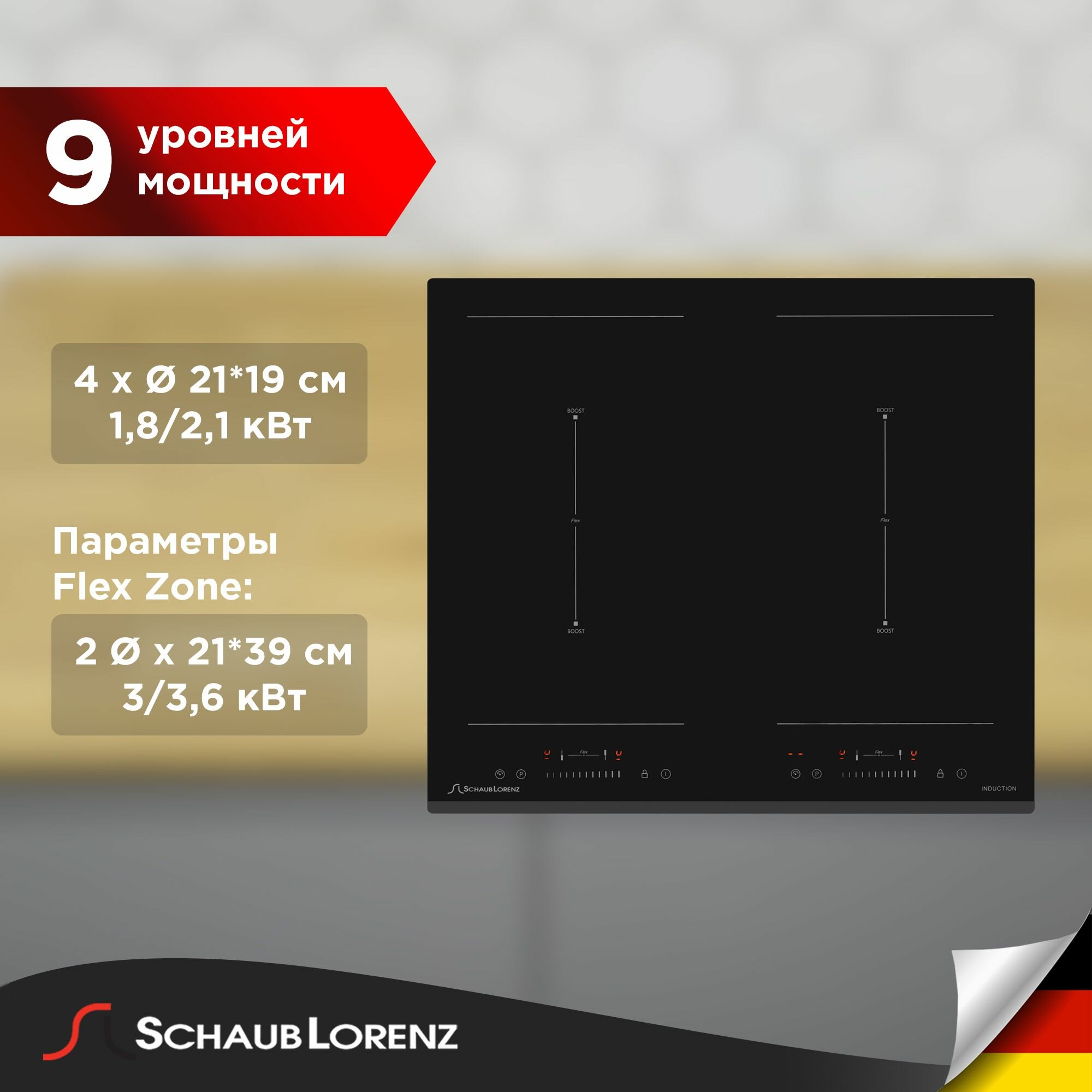 Индукционная варочная панель Schaub Lorenz SLK IY 65 S1, 60см, чёрная, Flex Zone, Boost