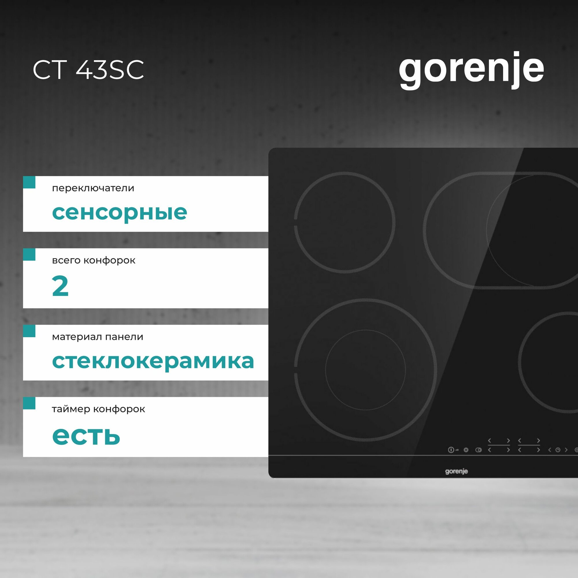 Варочная панель Gorenje CT 43SC электрическая 4 конфорки, зона расширения, стеклокерамика, без рамки, таймер, автоприготовление