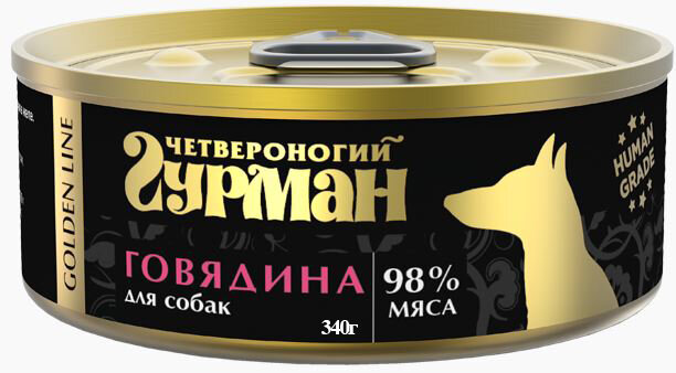 Четвероногий Гурман Корм консервированный для собак Golden Говядина, 340 г