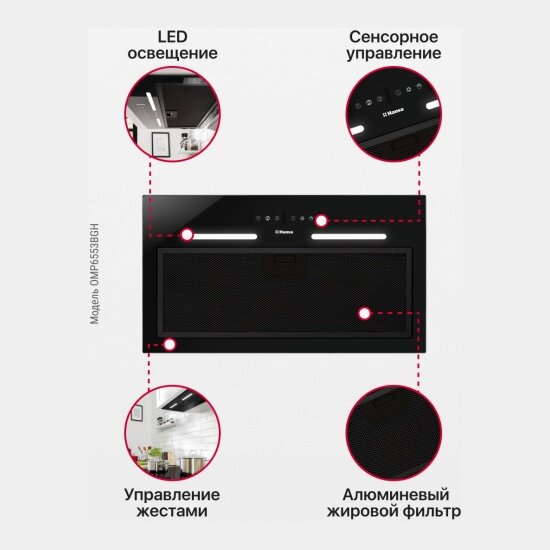 Встраиваемая вытяжка Hansa OMP6553BGH, 55 см, с типом управления жесты+сенсорное, черный, с автоотключением