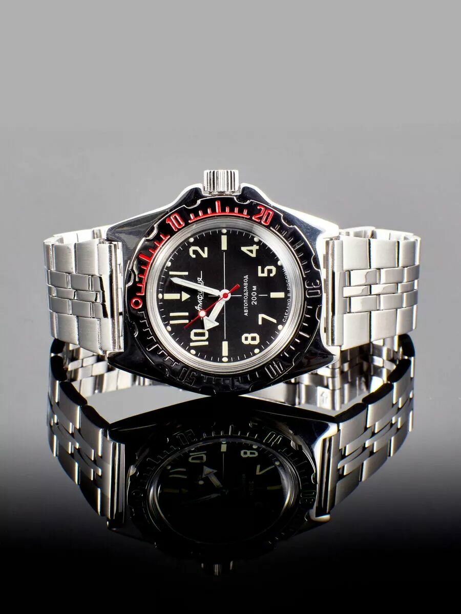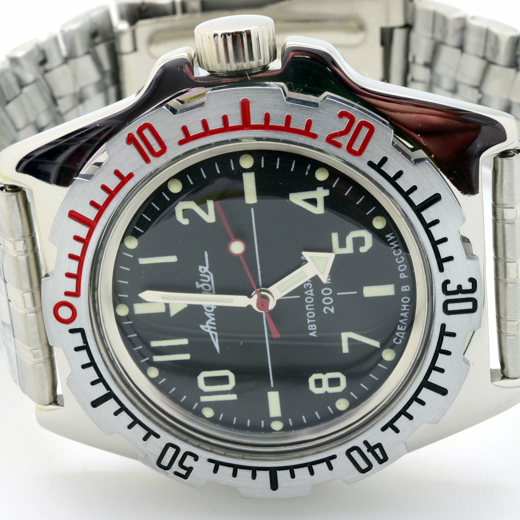 Наручные механические часы с автоподзаводом Восток Амфибия 110647 black red