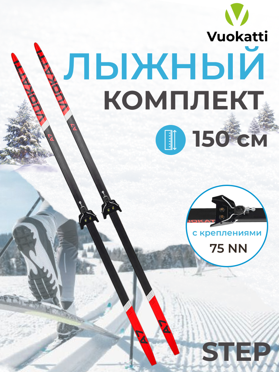 Купить Беговые лыжи VUOKATTI 150 см с креплением NN75 мм Step цвет Black/Red