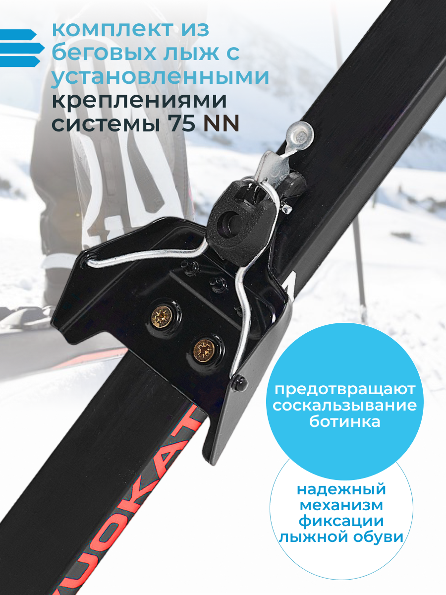Лыжи беговые VUOKATTI 170 см с креплением 75 мм Step цвет Black/Red