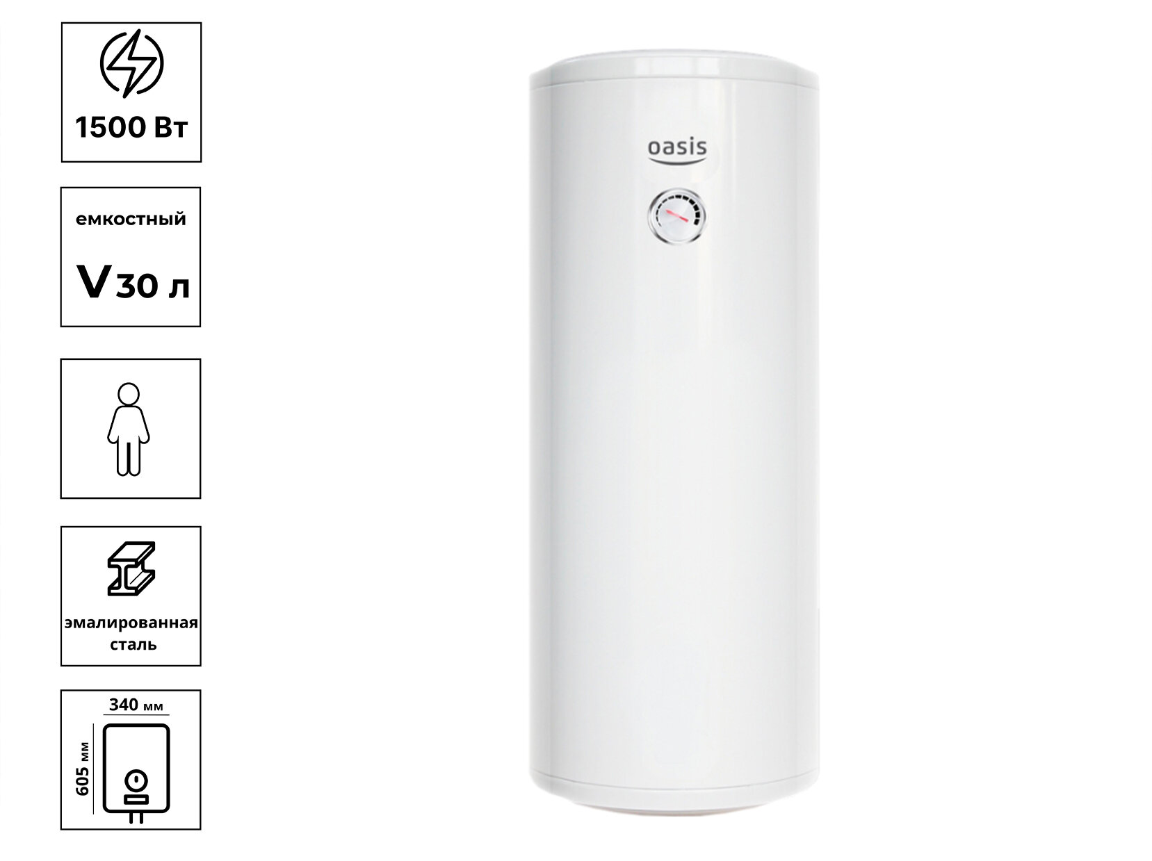 Водонагреватель OASIS SL- 30 V /slim/1,5кВт, стеклоэмалированное покрытие бака, б/диспл.