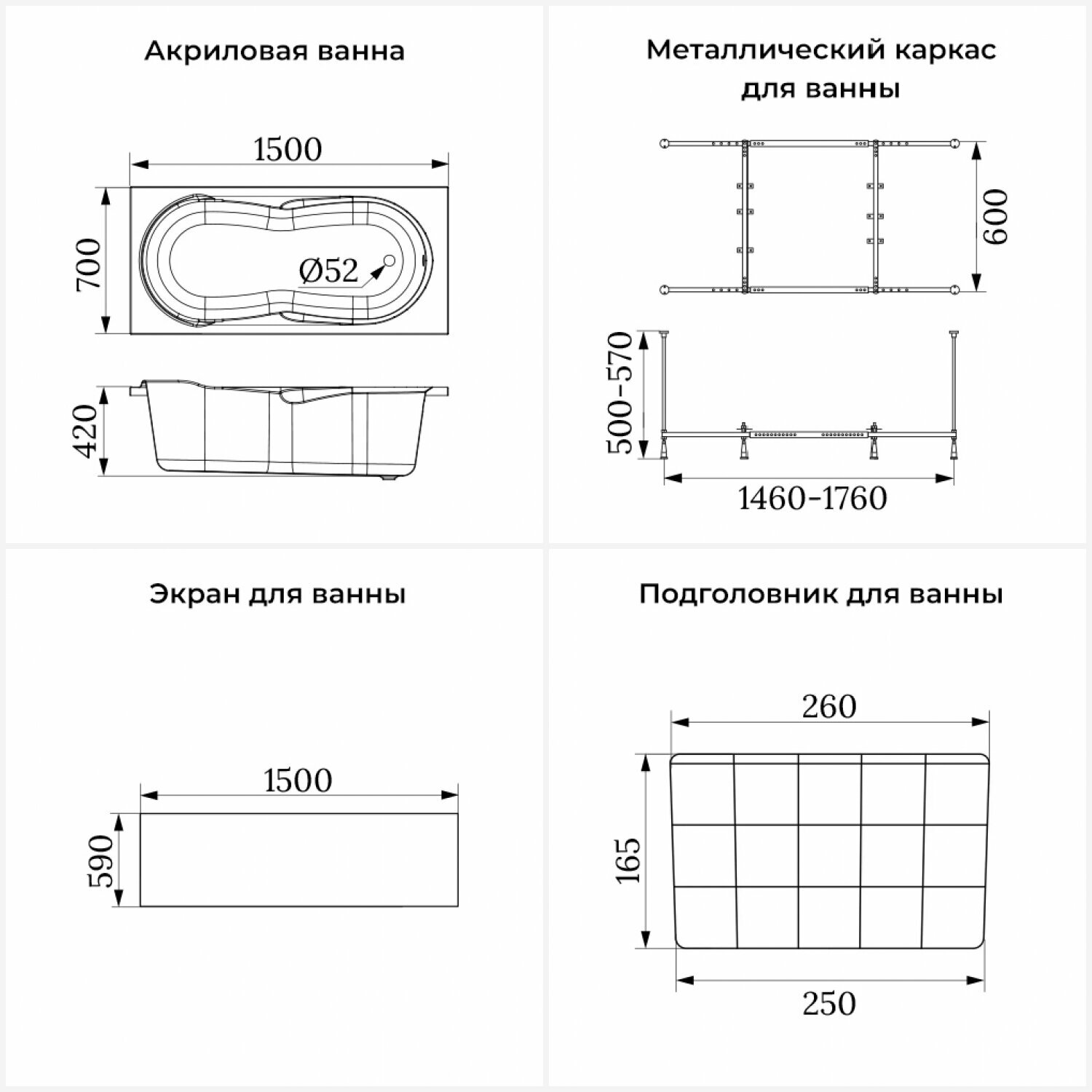Акриловая ванна 150х70 см Lavinia Boho Easter Pro набор 4 в 1 S2-3706005P: прямоугольная ванна, металлический каркас, подголовник, лицевой экран
