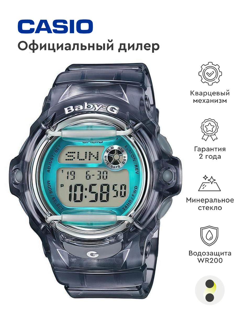 Наручные часы CASIO BG-169R-8B кварцевые, будильник, записная книжка, хронограф, секундомер, таймер обратного отсчета, водонепроницаемые, противоударные, подсветка дисплея, прозрачный