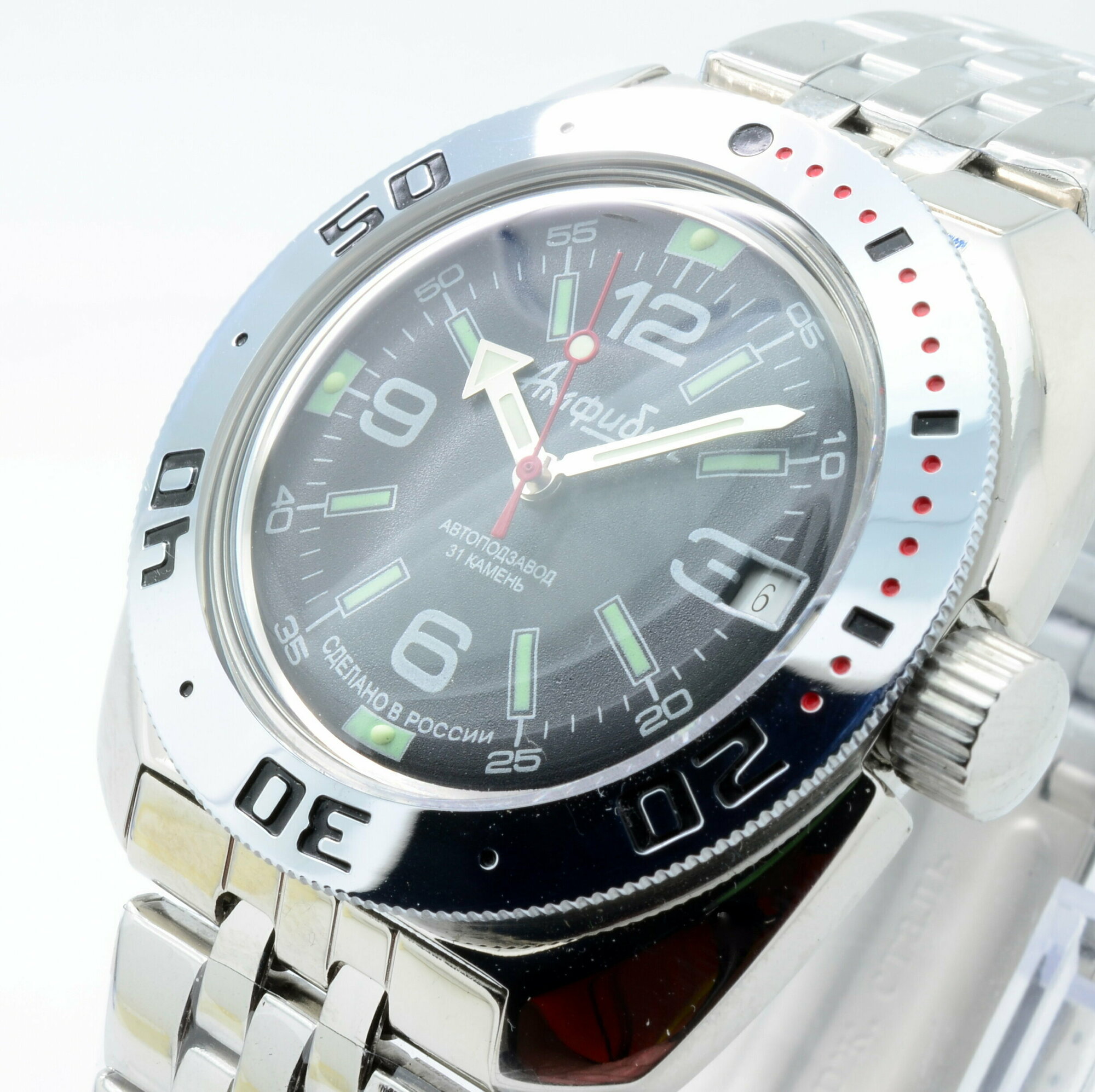 Наручные механические часы с автоподзаводом Восток Амфибия 710640 black
