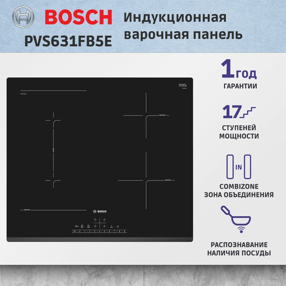 Варочная панель индукционная Bosch PVS631FB5E, черный интересное: