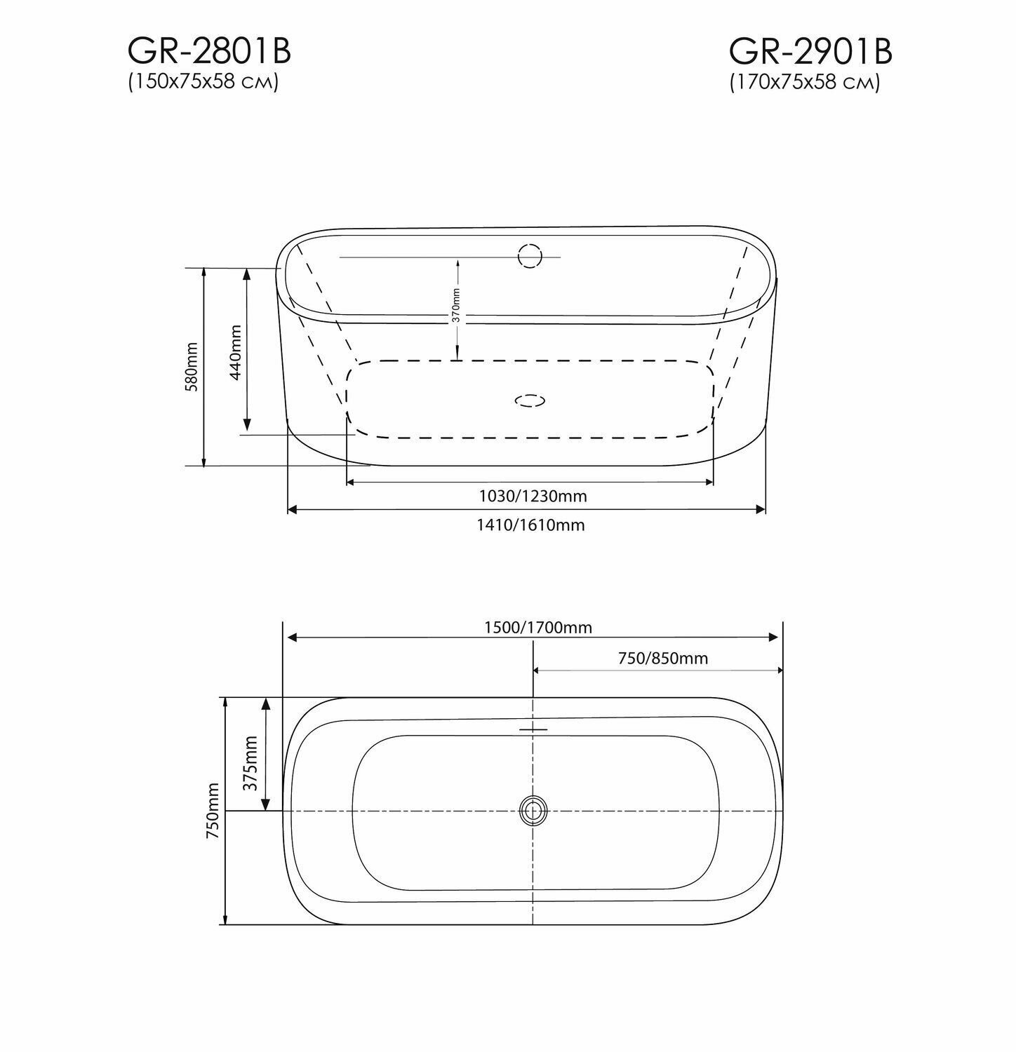 Ванна отдельностоящая GROSSMAN GR-2901B 170x75