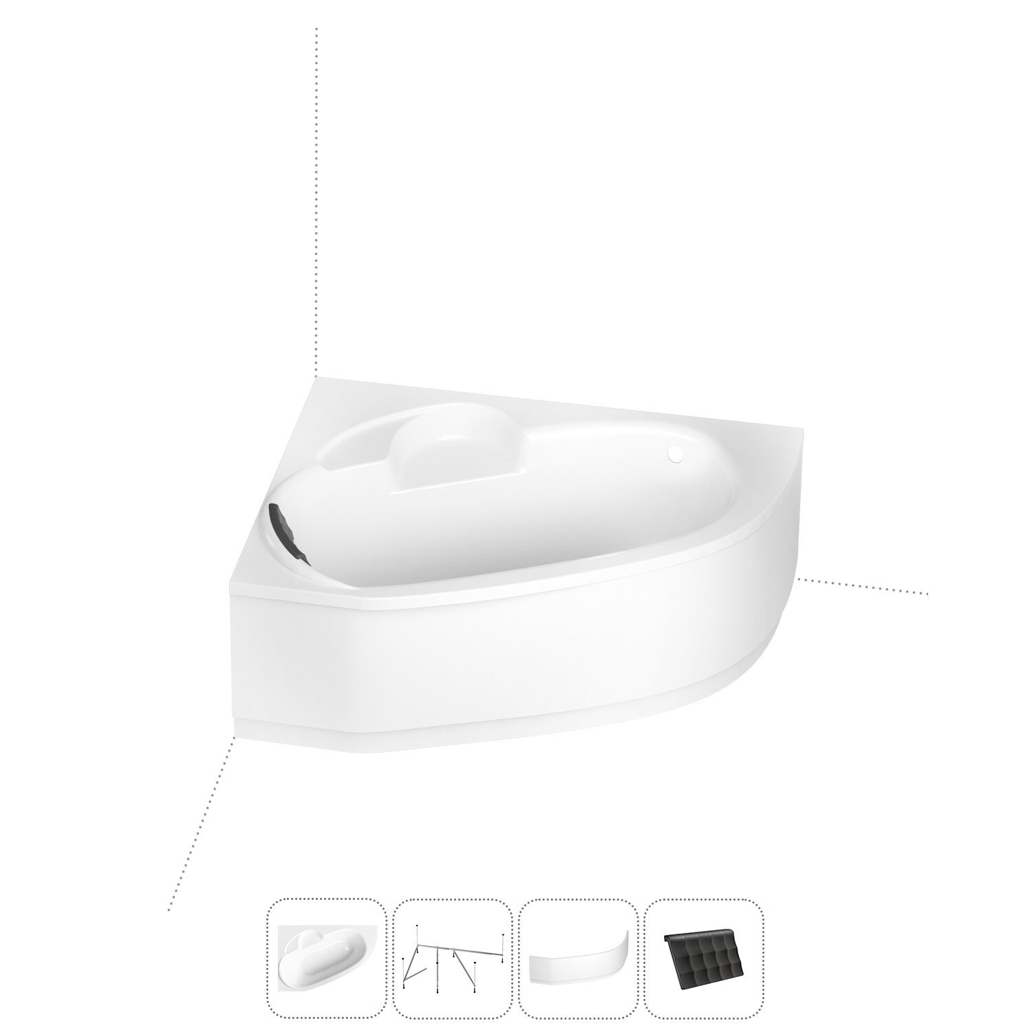 Акриловая ванна 140х95 см Lavinia Boho Bell Pro набор 4 в 1: угловая ванна (левый разворот), каркас, подголовник, лицевой экран