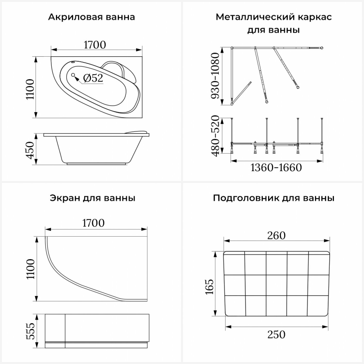 Комплект 4 в 1 Lavinia Boho Bell Pro S2-370217PL, акриловая ванна 170x110 см (левый разворот), каркас, подголовник, лицевой экран