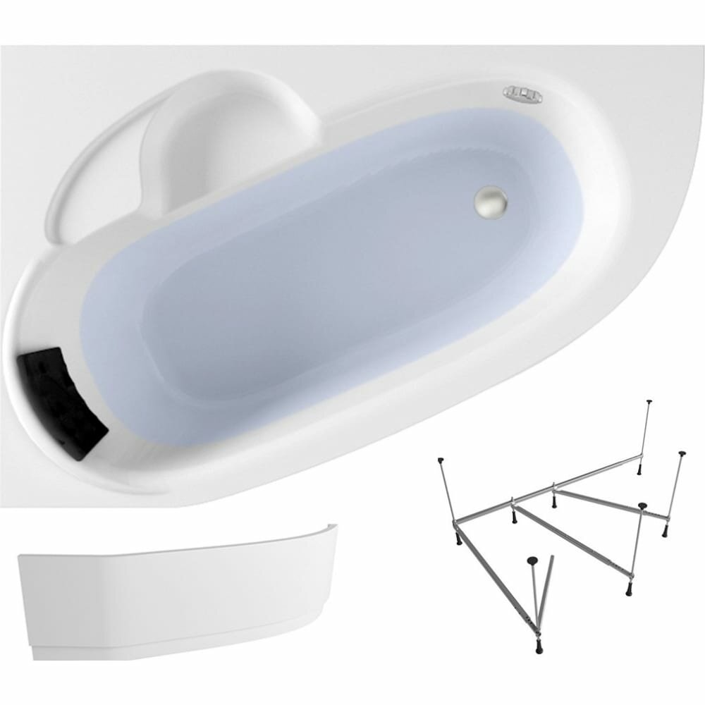 Акриловая ванна 160х105 см Lavinia Boho Bell Pro набор 4 в 1 S2-370216PL: угловая ванна (левый разворот), каркас, подголовник, лицевой экран