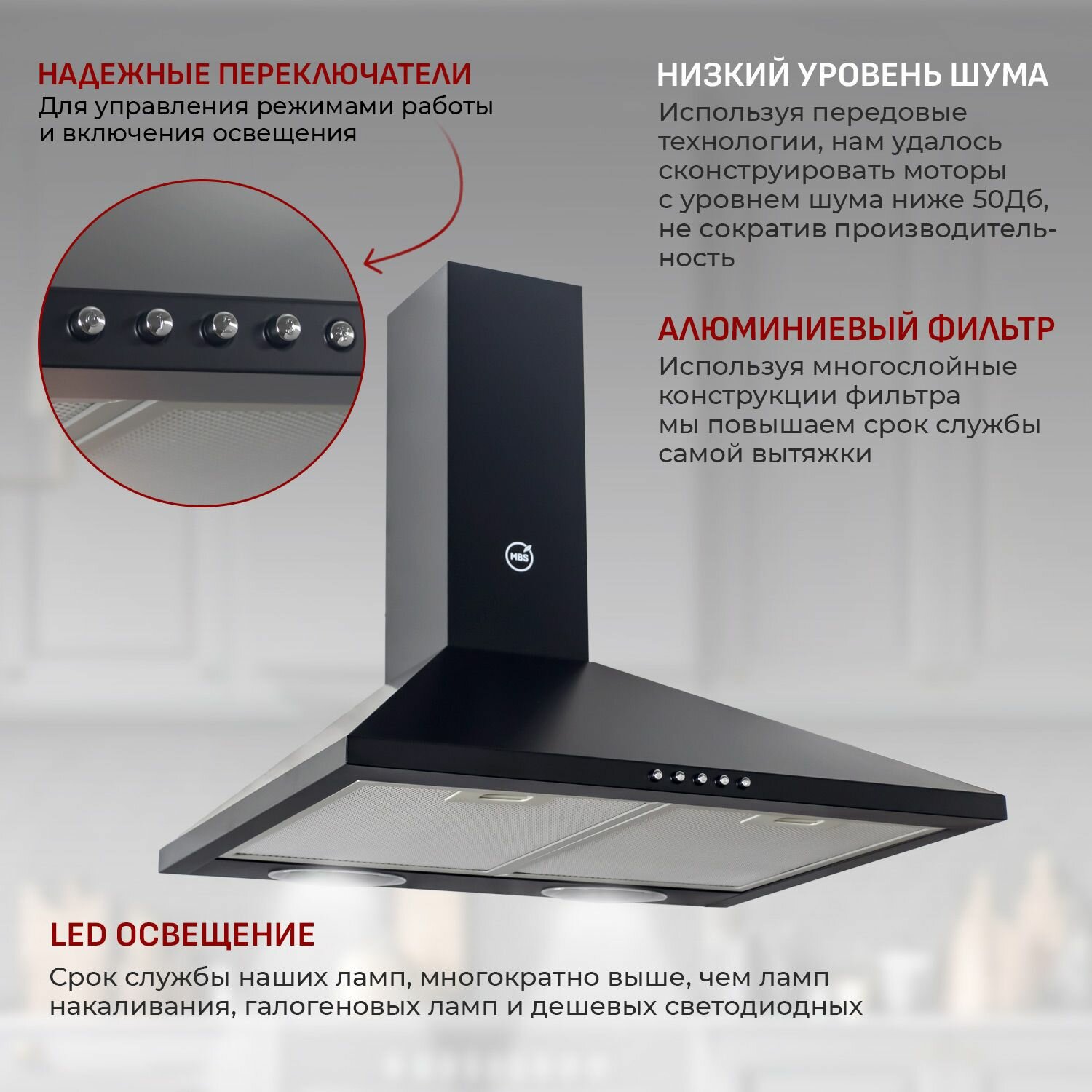 Купить Кухонная вытяжка MBS GERBERA 150 BLACK/50 см/производительность 650м3/ч, низкий уровень шума.