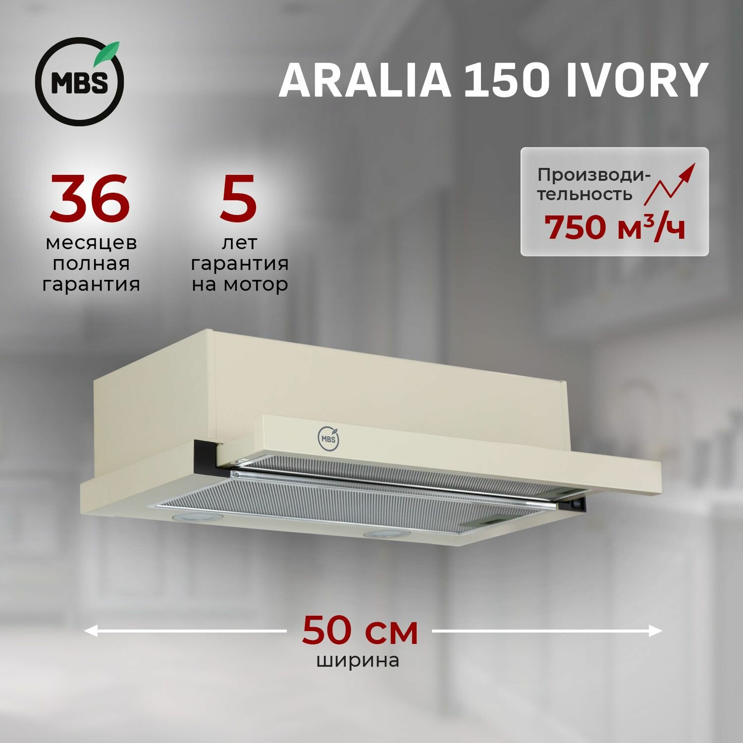 Купить Кухонная вытяжка встраиваемая MBS ARALIA 150 IVORY/50 см/производительность 750м3/ч, низкий уровень шума.