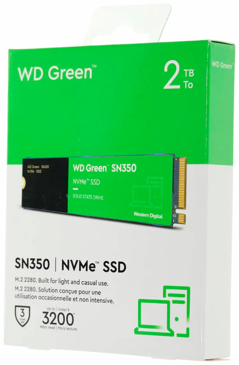 Купить WD Твердотельный накопитель Western Digital SSD Green SN350 2Tb M2.2280 PCIe 3.0 WDS200T3G0C, 1 year