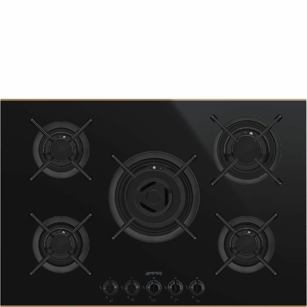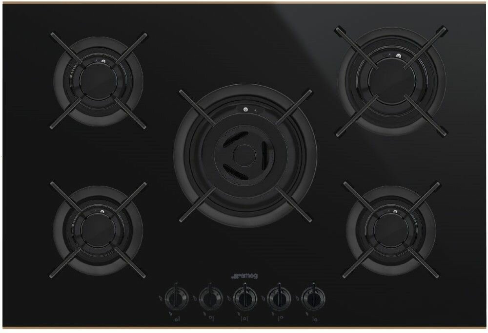 Купить Газовая варочная панель Smeg PV675CNR, черное стекло + медный профиль, 5 конфорок, конфорка с 3-м пламенем, электроподжиг, газконтроль, чугунные решетки