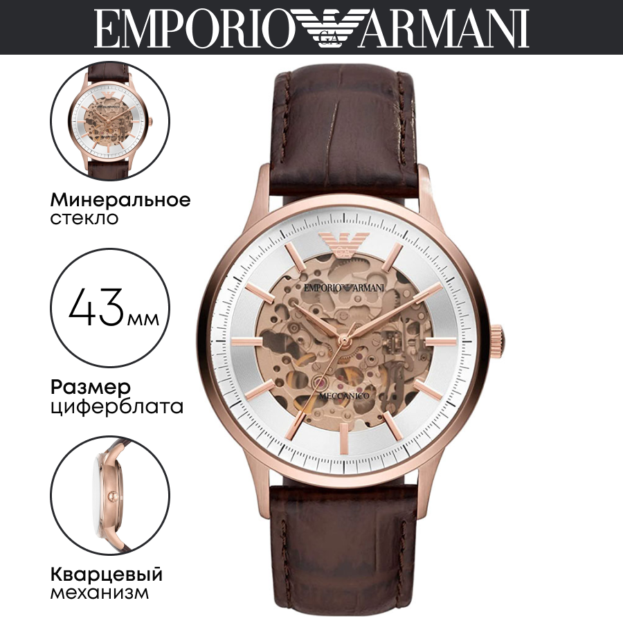 Купить Мужские наручные механические часы EMPORIO ARMANI AR60039 коричневые