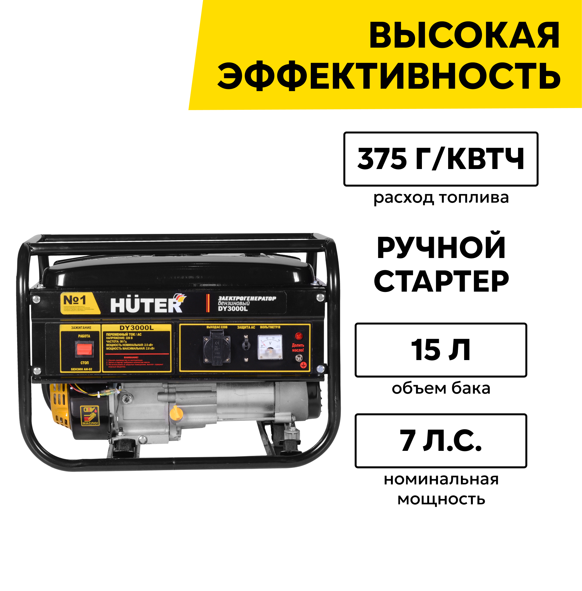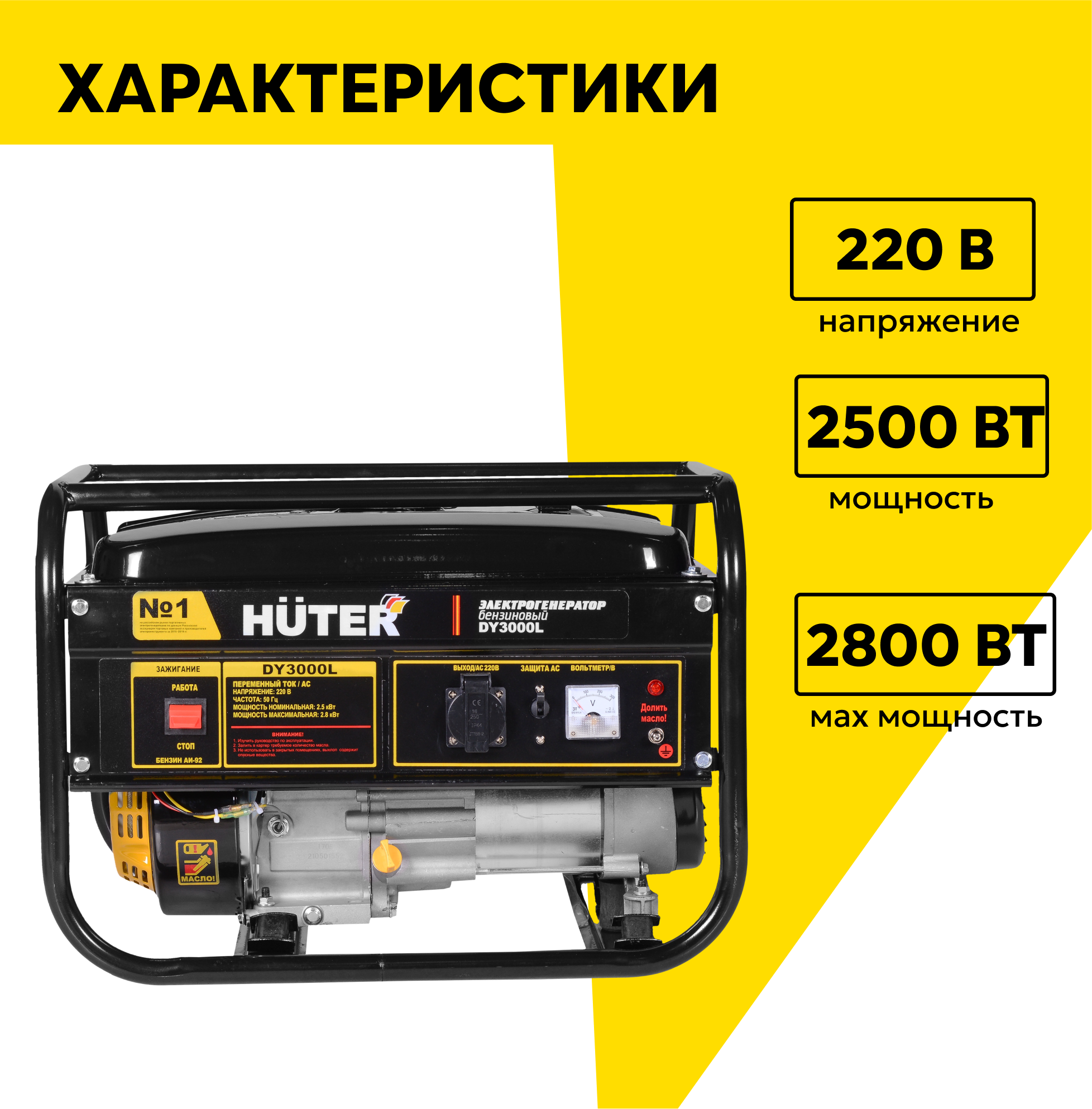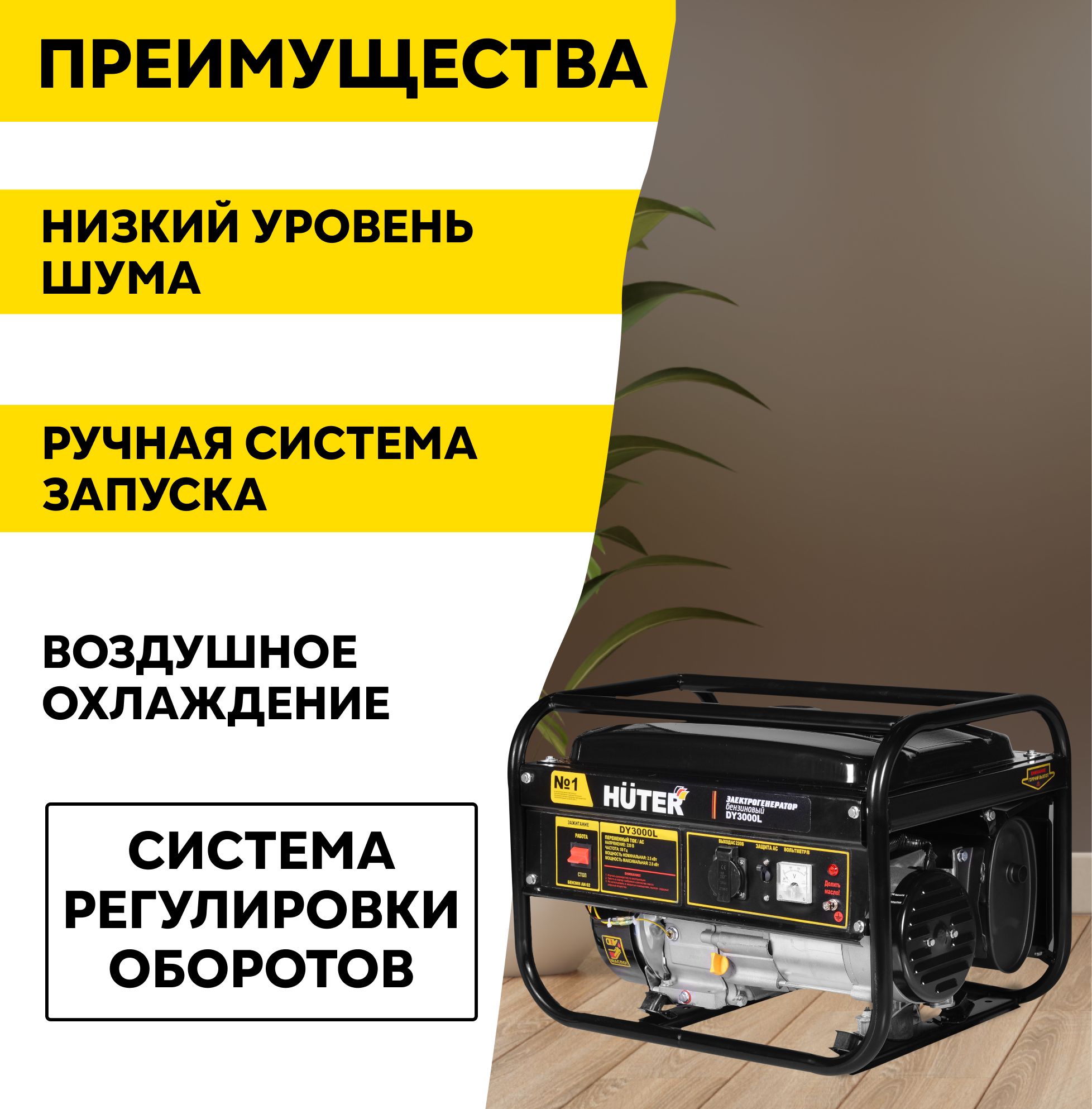 Купить Генератор бензиновый HUTER DY3000L с ручным запуском с максимальной мощностью 2800 Вт