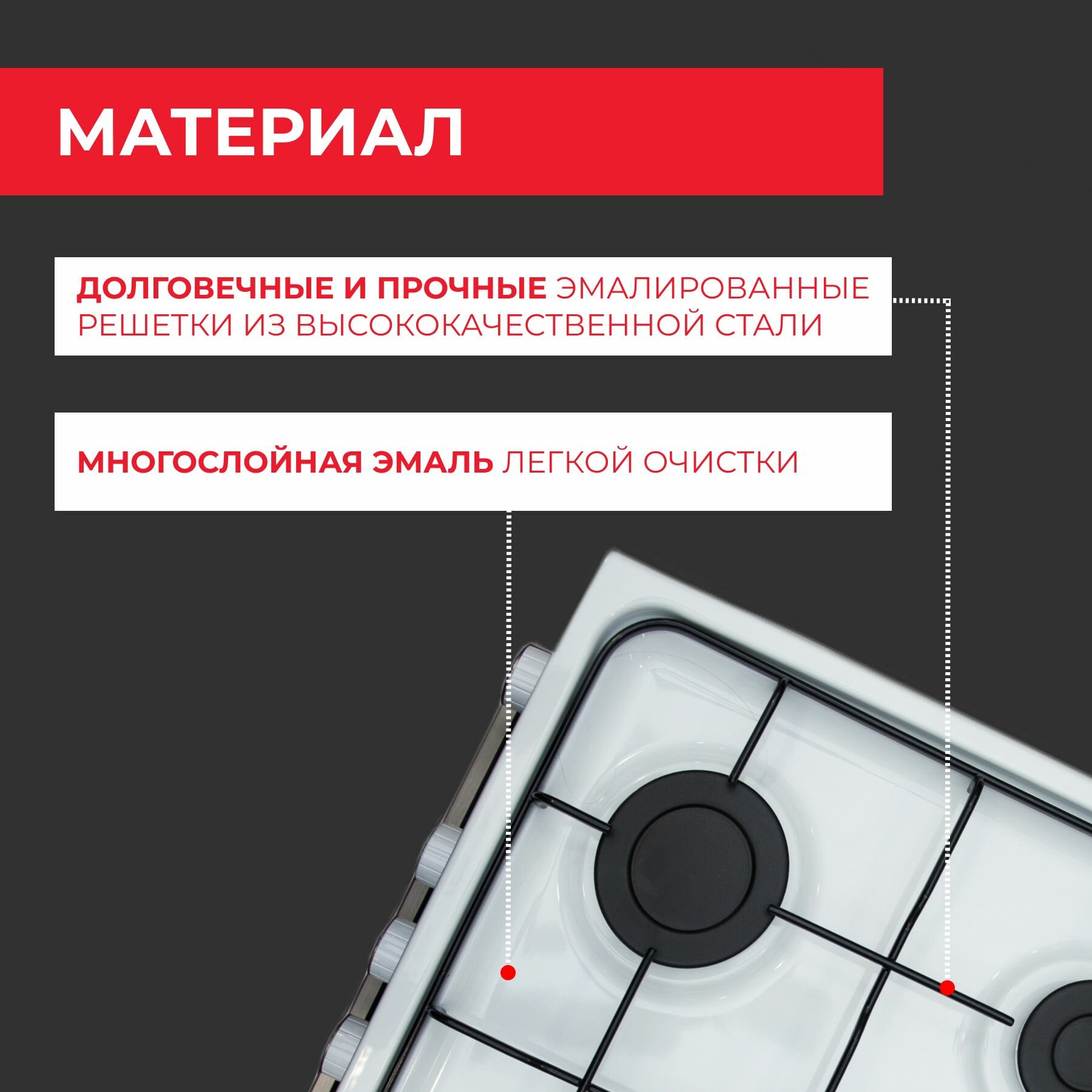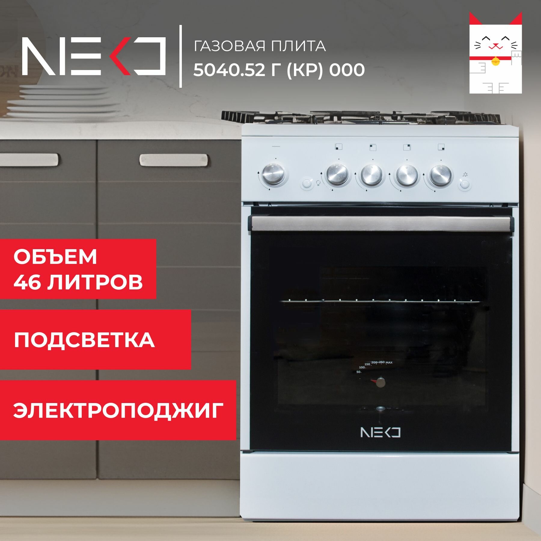 Газовая плита с духовкой газовой, электроподжигом NEKO 5040.52 г (кр) 000, объем 46 л, ширина 50 см, белая интересное: