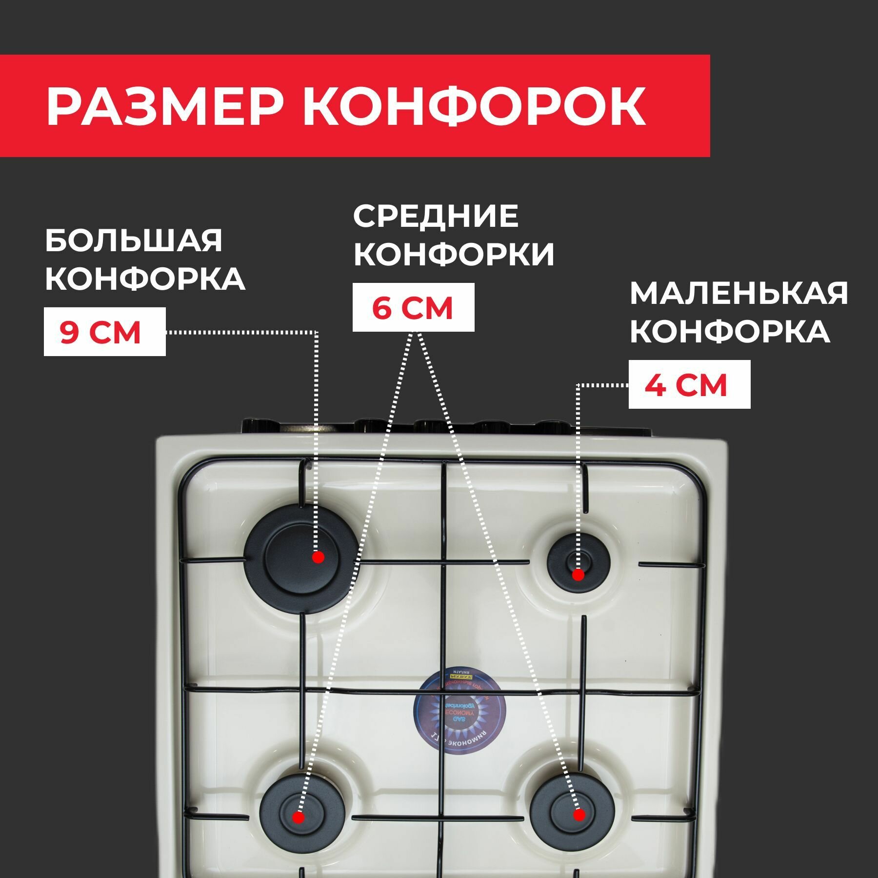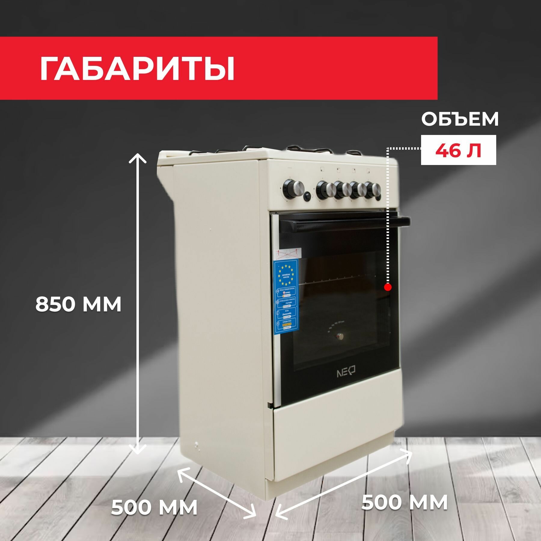 Газовая плита с духовкой газовой, электроподжигом NEKO 5040.52 г (кр) 013, объем 46 л, ширинам 50 см, бежевая интересное: