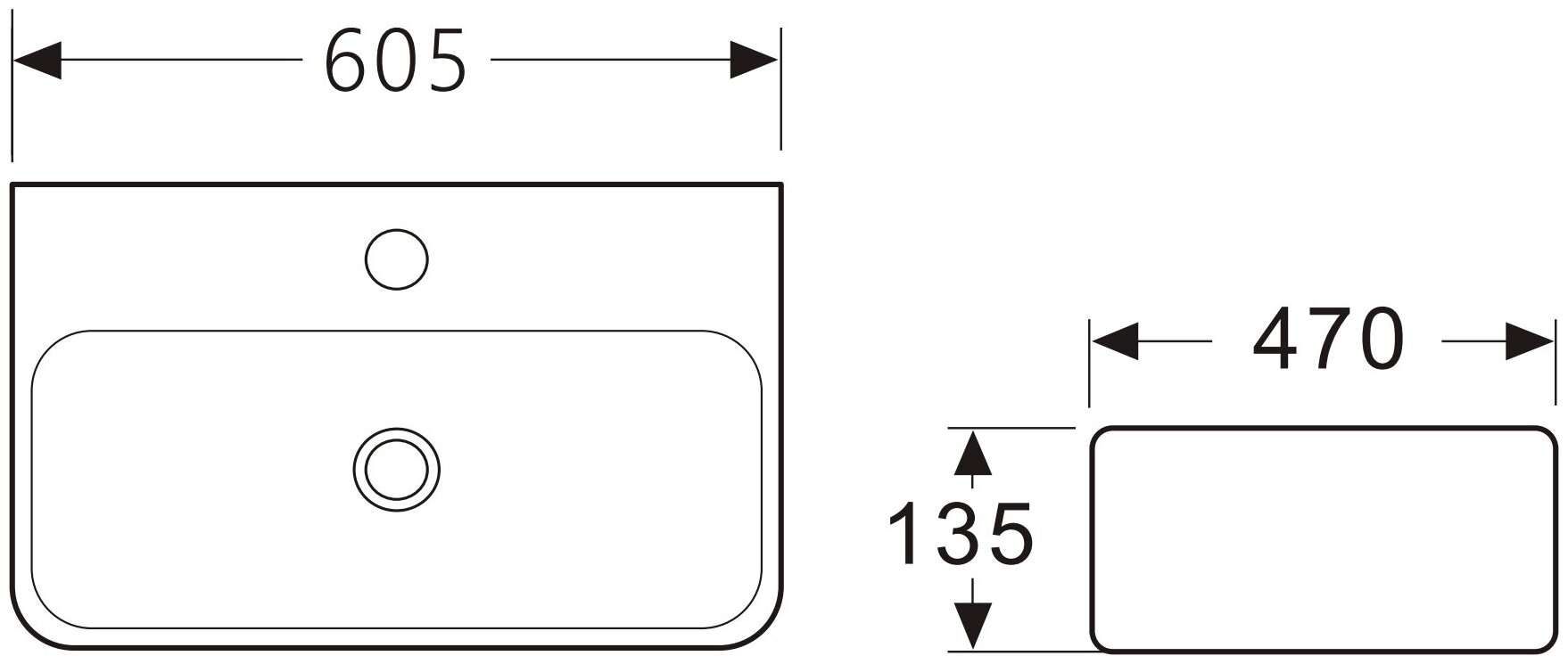 Купить Ceramica Nova Умывальник AURA с 1 отверстием для смесителя, без перелива 600*470*135мм