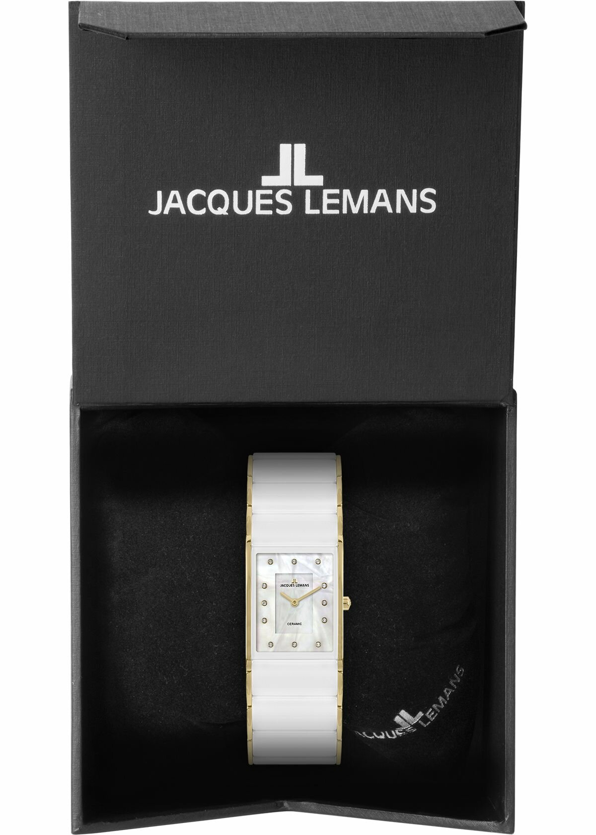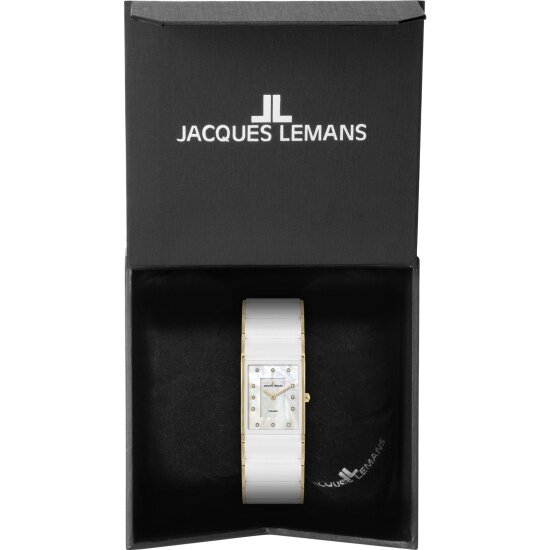 Купить Наручные часы Jacques Lemans 1-1940K, женские прямоугольные кварцевые керамические часы Жак Леман с кристаллами Swarovski на комбинированном браслете (сталь и керамика)