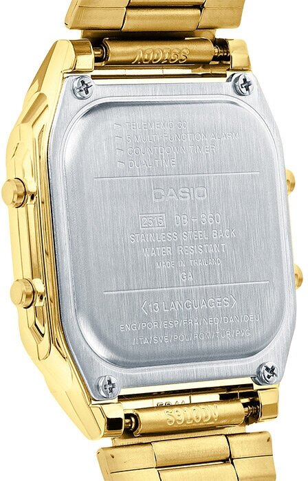 DB-360G-9A Casio наручные часы кварцевые WR50 (5 атм) мужские, женские желтый секундомер, таймер обратного отсчета будильник отображение года, второй часовой пояс, отображение дня недели, отображение месяца, отображение числа подсветка дисплея акриловое с