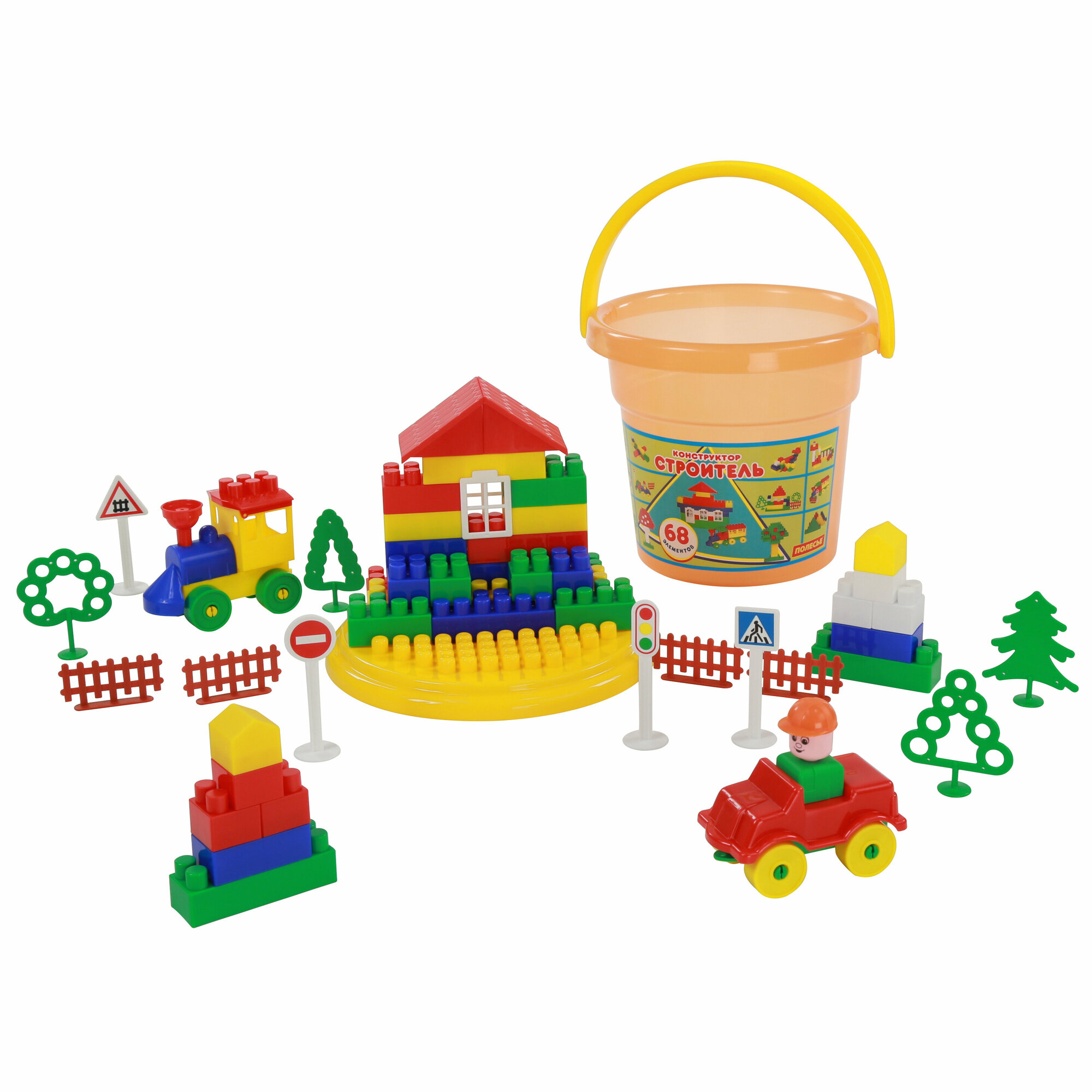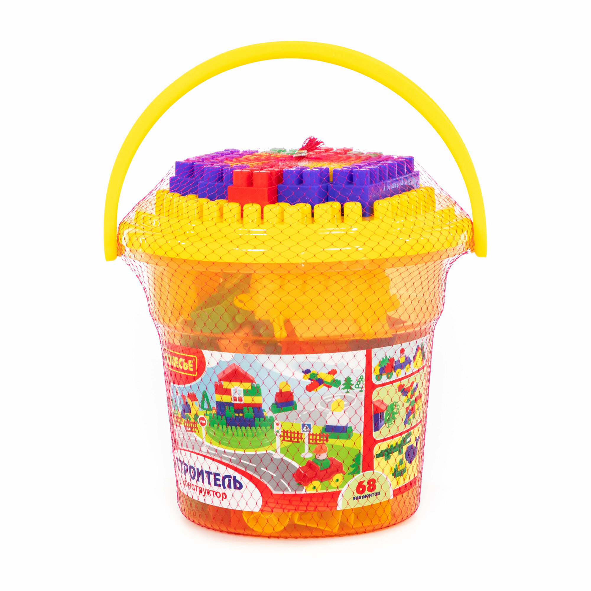 Полесье Конструктор «Строитель», 68 элементов, в ведре макси с крышкой