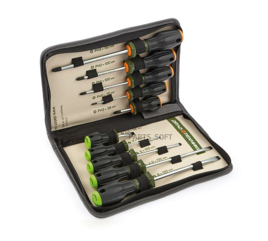 Дело техники 728100 728100 набор отверток c трехкомпонентной рукояткой 10 предм. в тетроновом