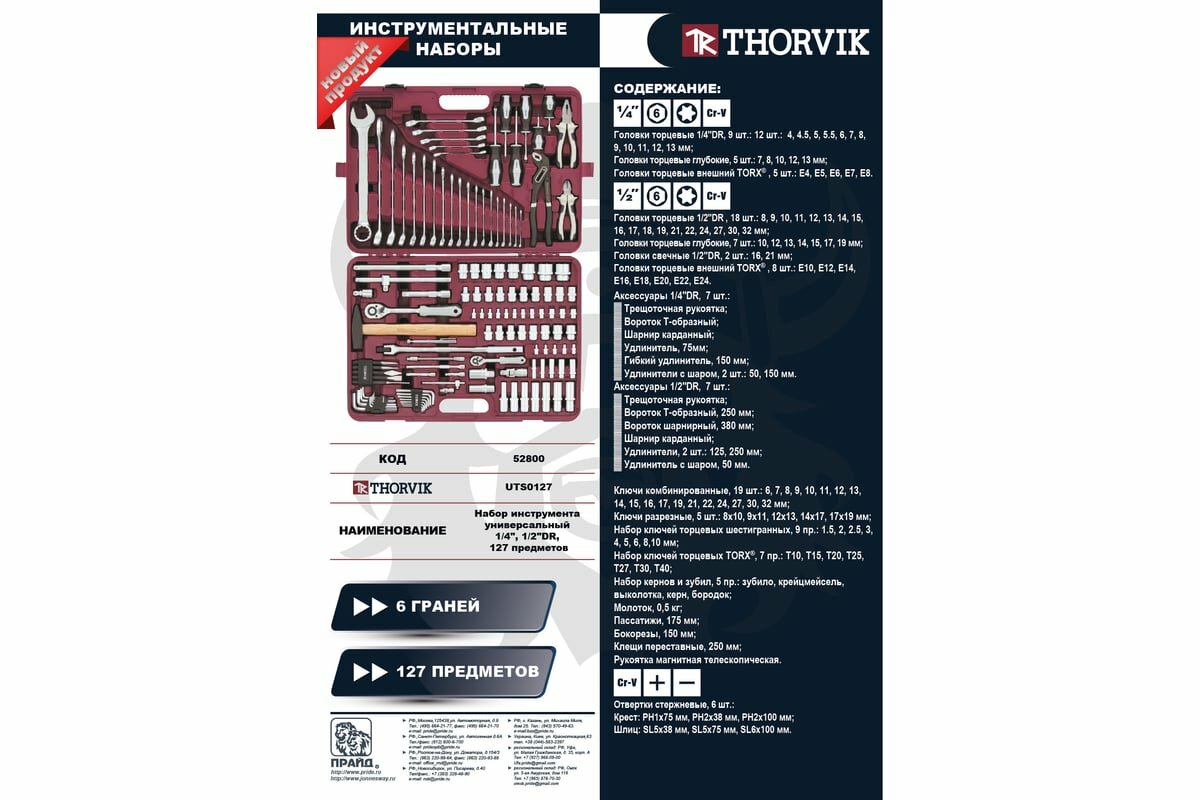 Набор инструмента универсальный 1/4, 1/2dr, 127 предметов thorvik uts0127