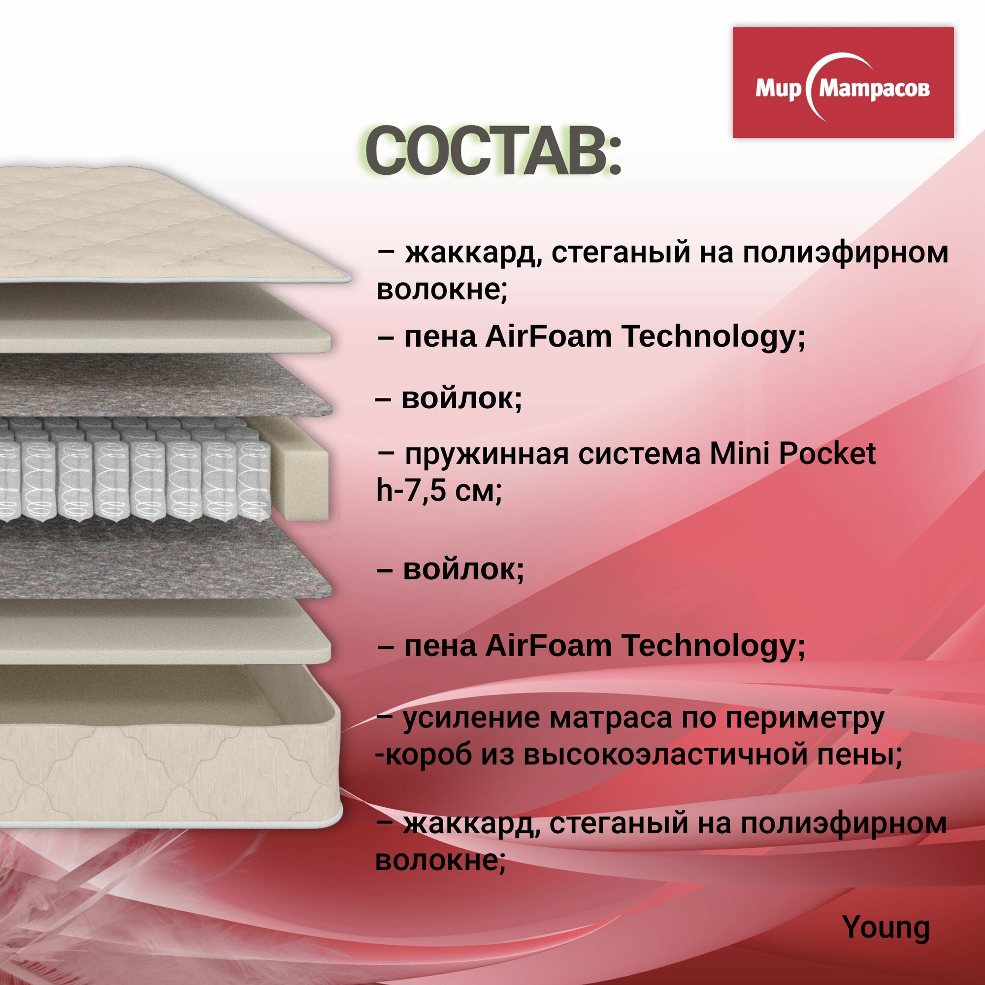 Матрас Мир Матрасов "Mom's Love Young", 160x80 см, независимые пружины, средняя жесткость