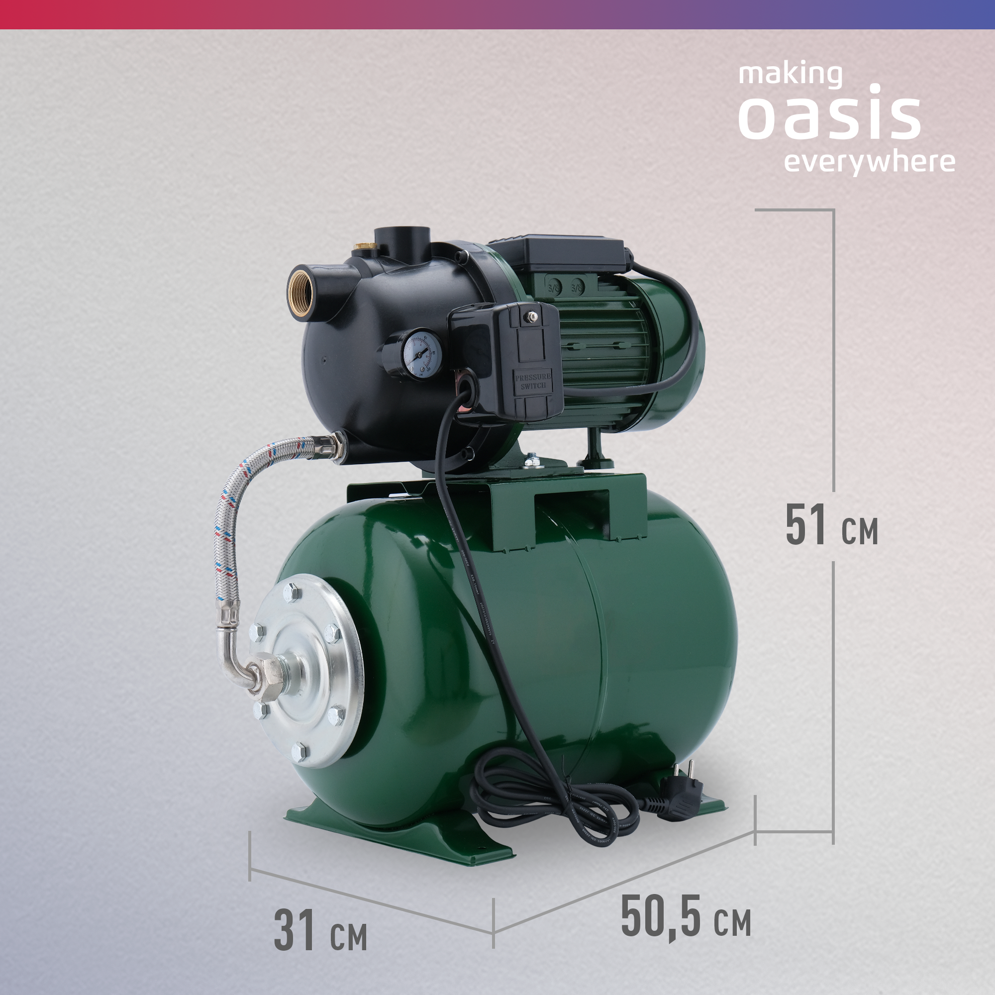 Насосная станция Оasis для дома, модель S 70/50P-24, 1100 Вт, 70 л/мин, напор 50 м, бак 24 л, для воды, насос водяной поверхностный
