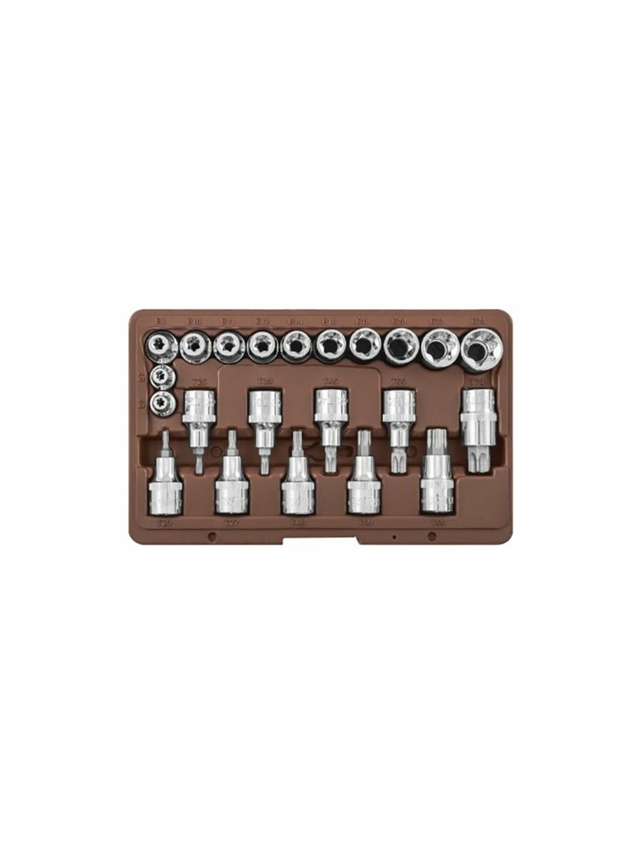 Набор головок торцевых внешний TORX и насадок с вставками битами TORX 22 предмета