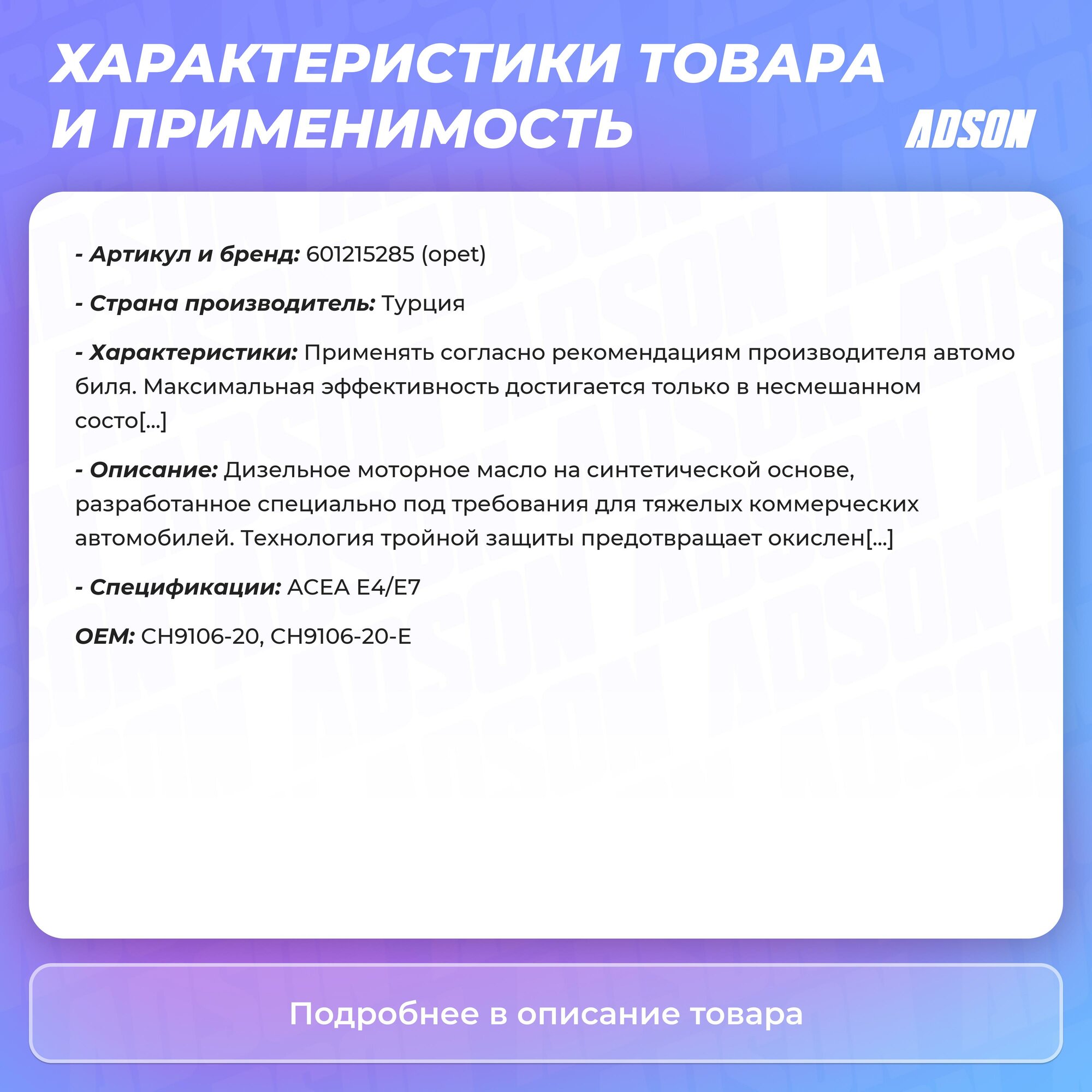 СохранитьOPET 601215285 Масо дизеьное FULLPRO HT 10W40 синт.20 OPET интересное: