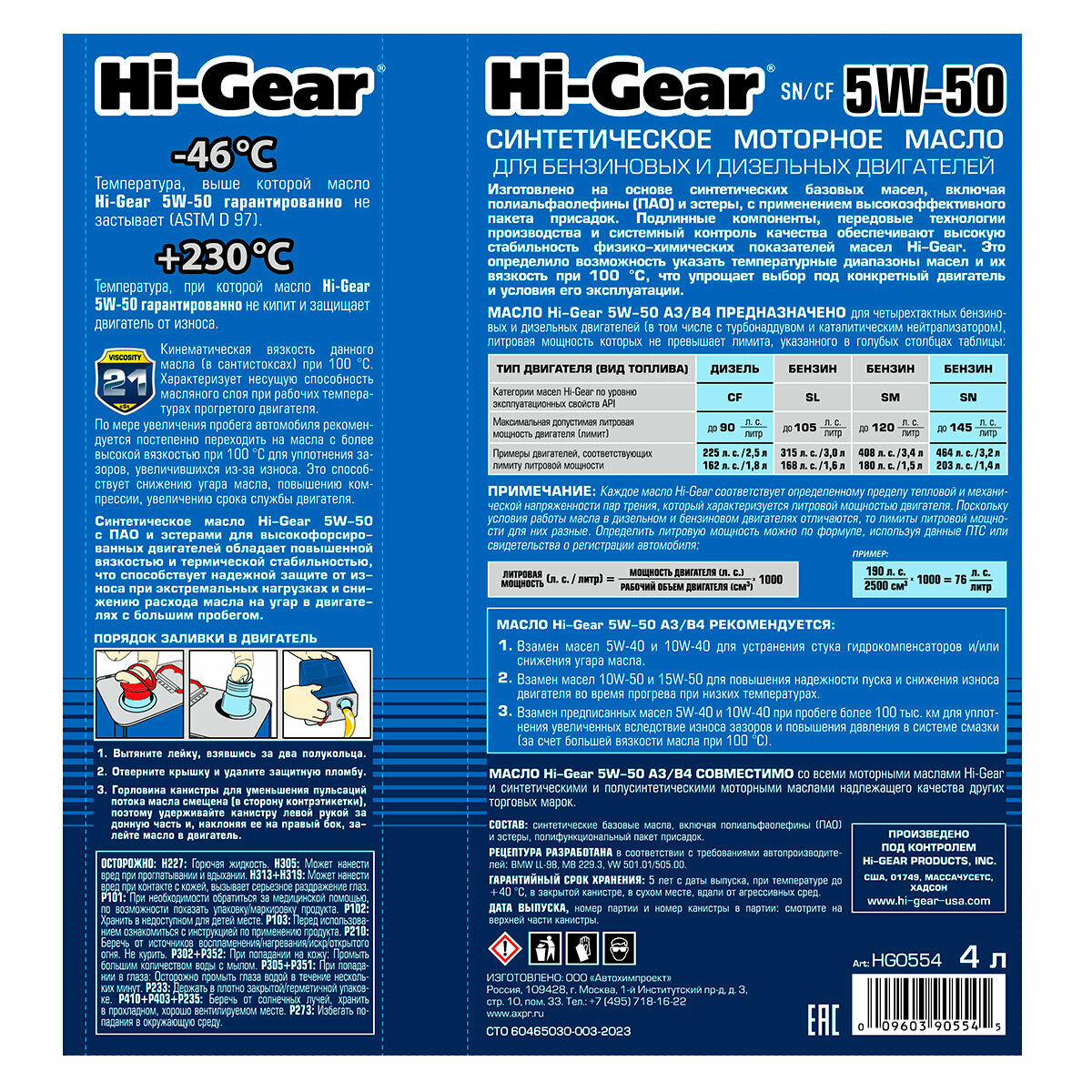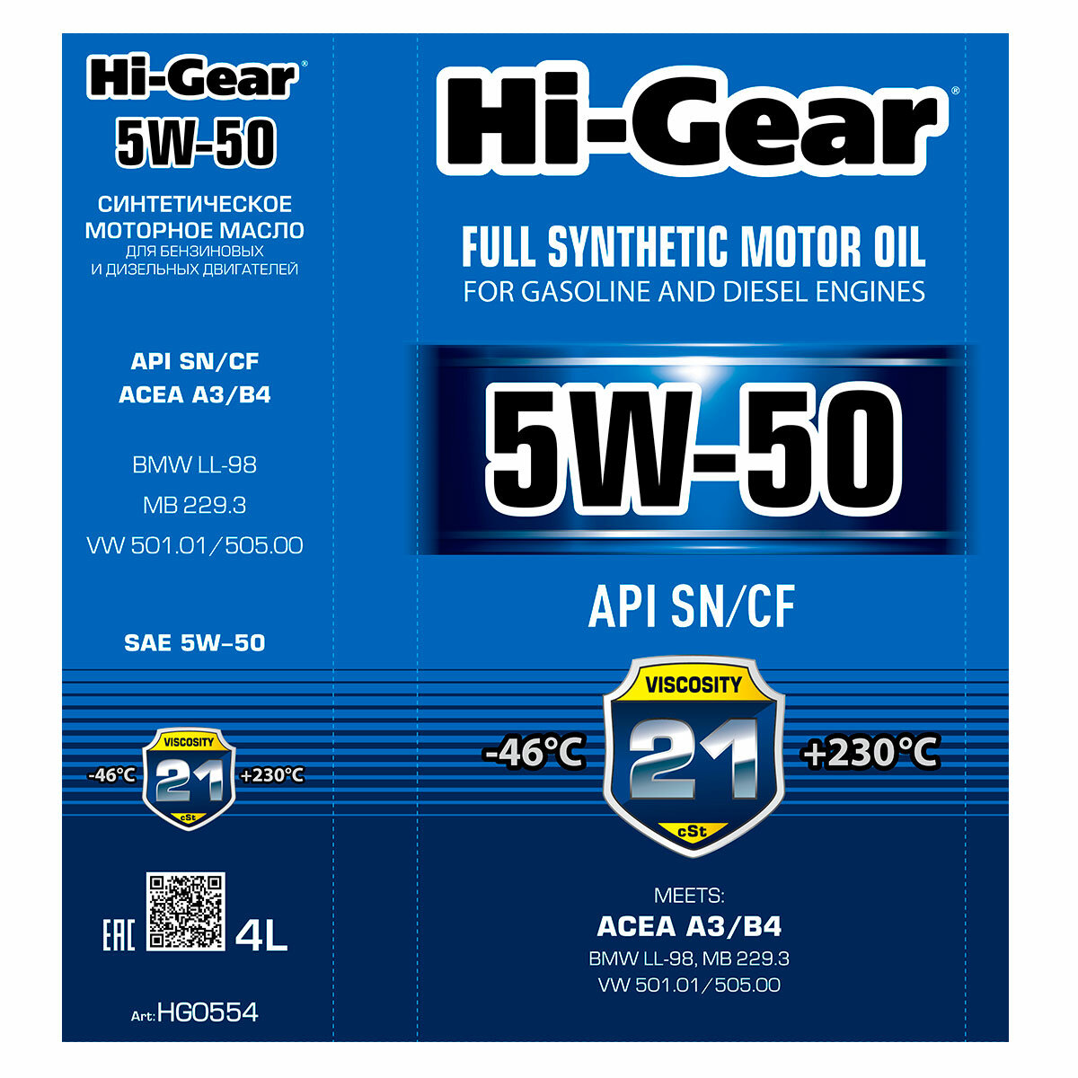 Моторное масло Hi-Gear 5W50 SM/CF, 4л (арт. HG0554) HG0554