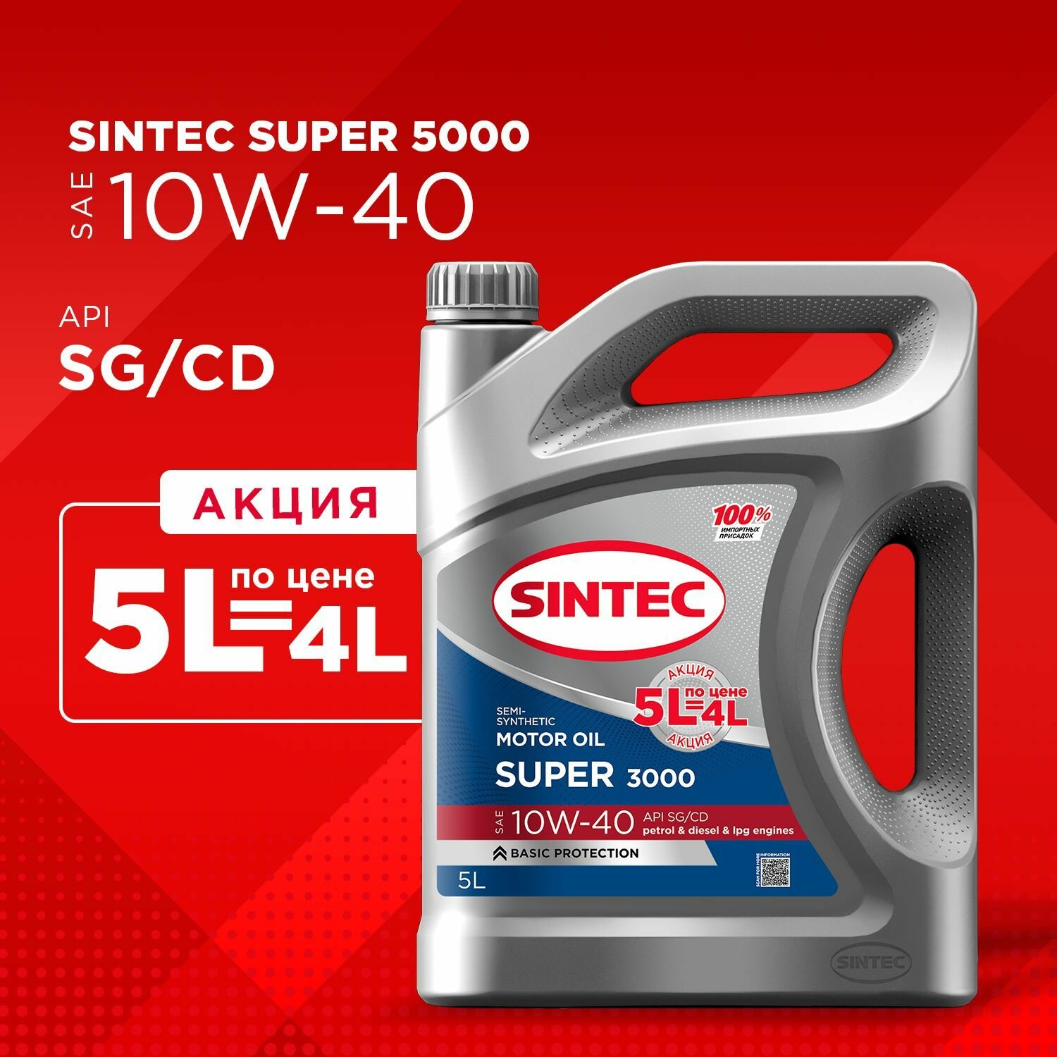 Sintec Super 3000 10W40 SG/CD 5л по цене 4л