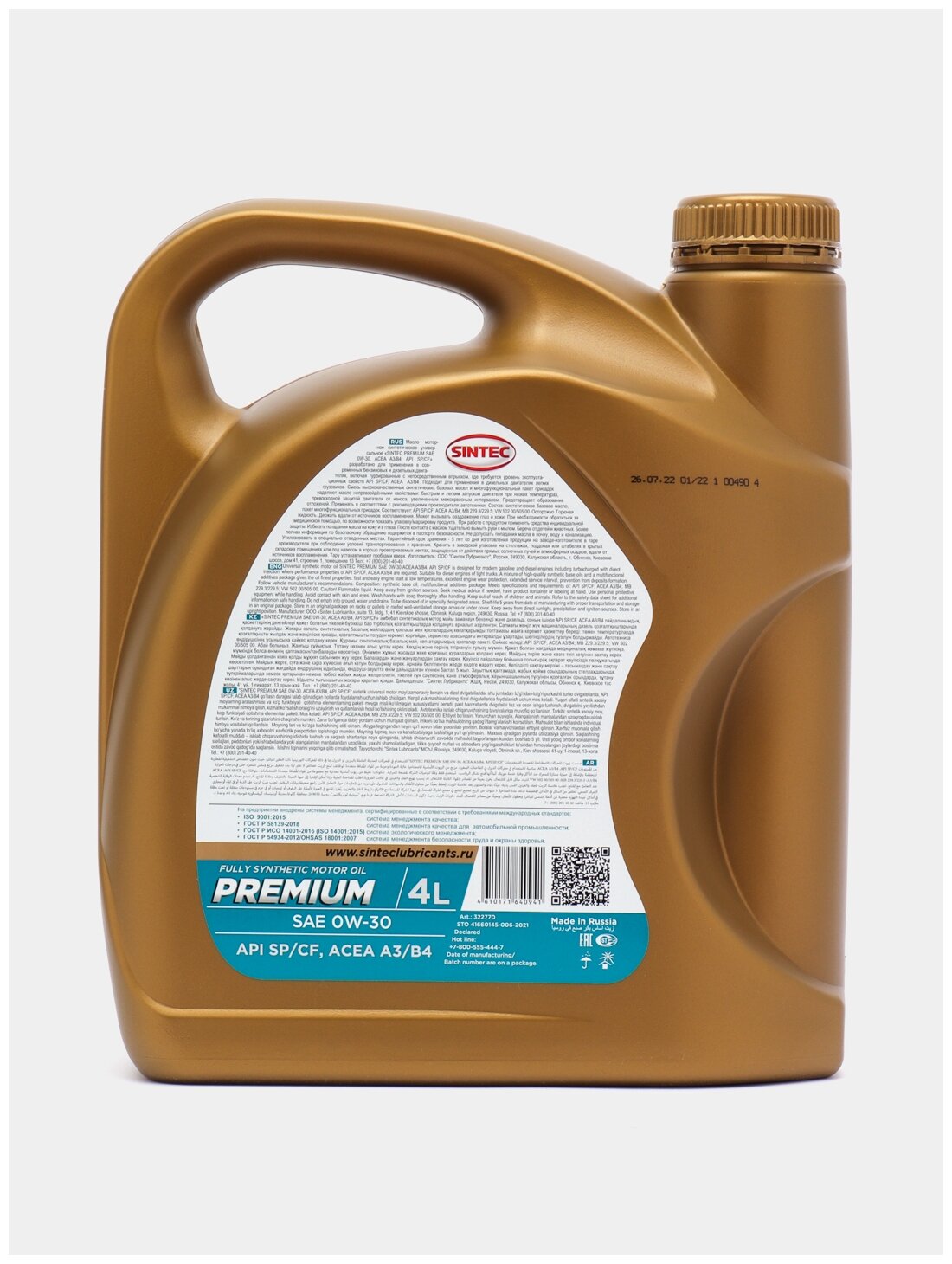 Купить SINTEC Масло Моторное 4L Premium Sae 0W30 Api Sp/Cf Acea A5/B5