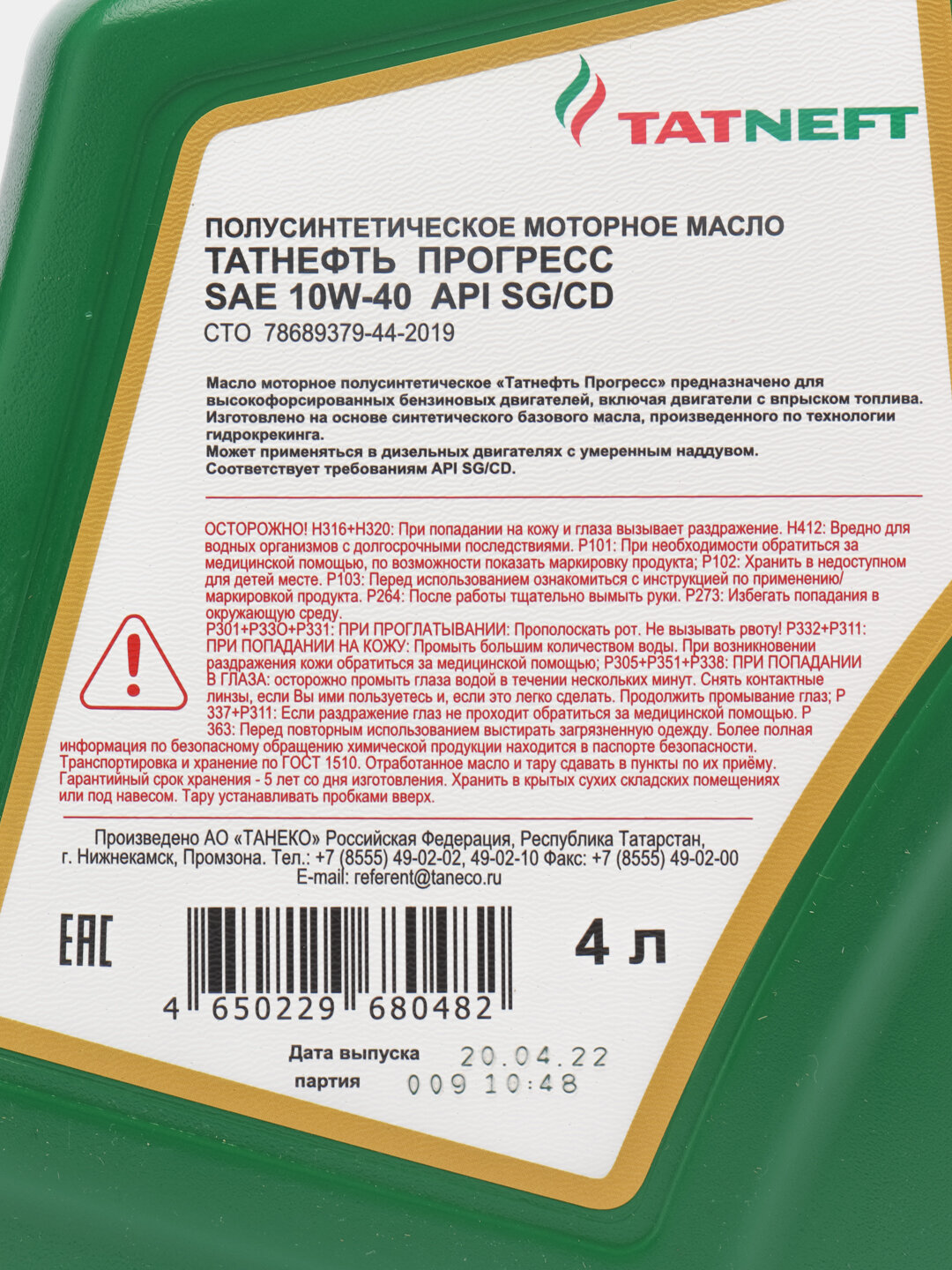 TATNEFT 11652 татнефть масло моторное прогресс SHSGCD 10W-40