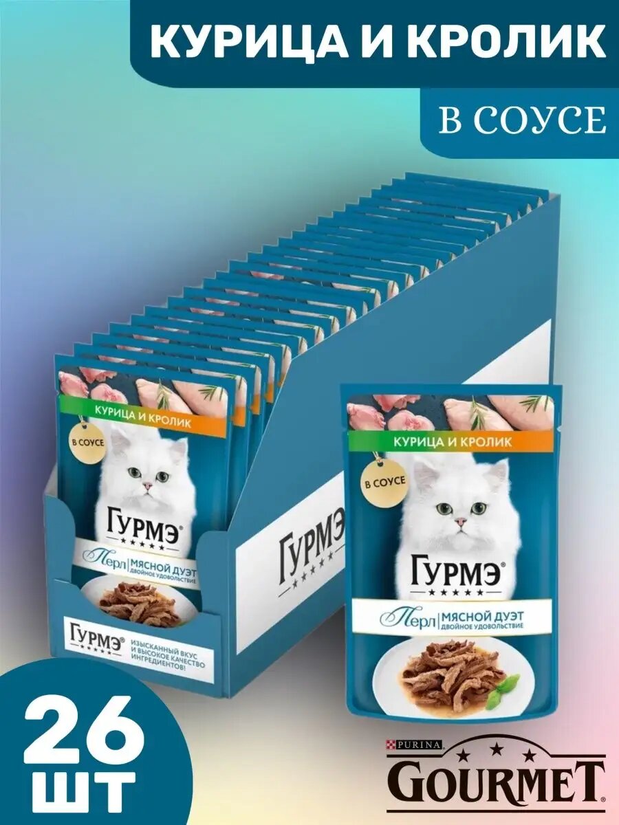 Влажный корм для кошек Гурмэ® Перл Мясной Дуэт с кроликом и курицей в соусе 75 г x 26 шт.