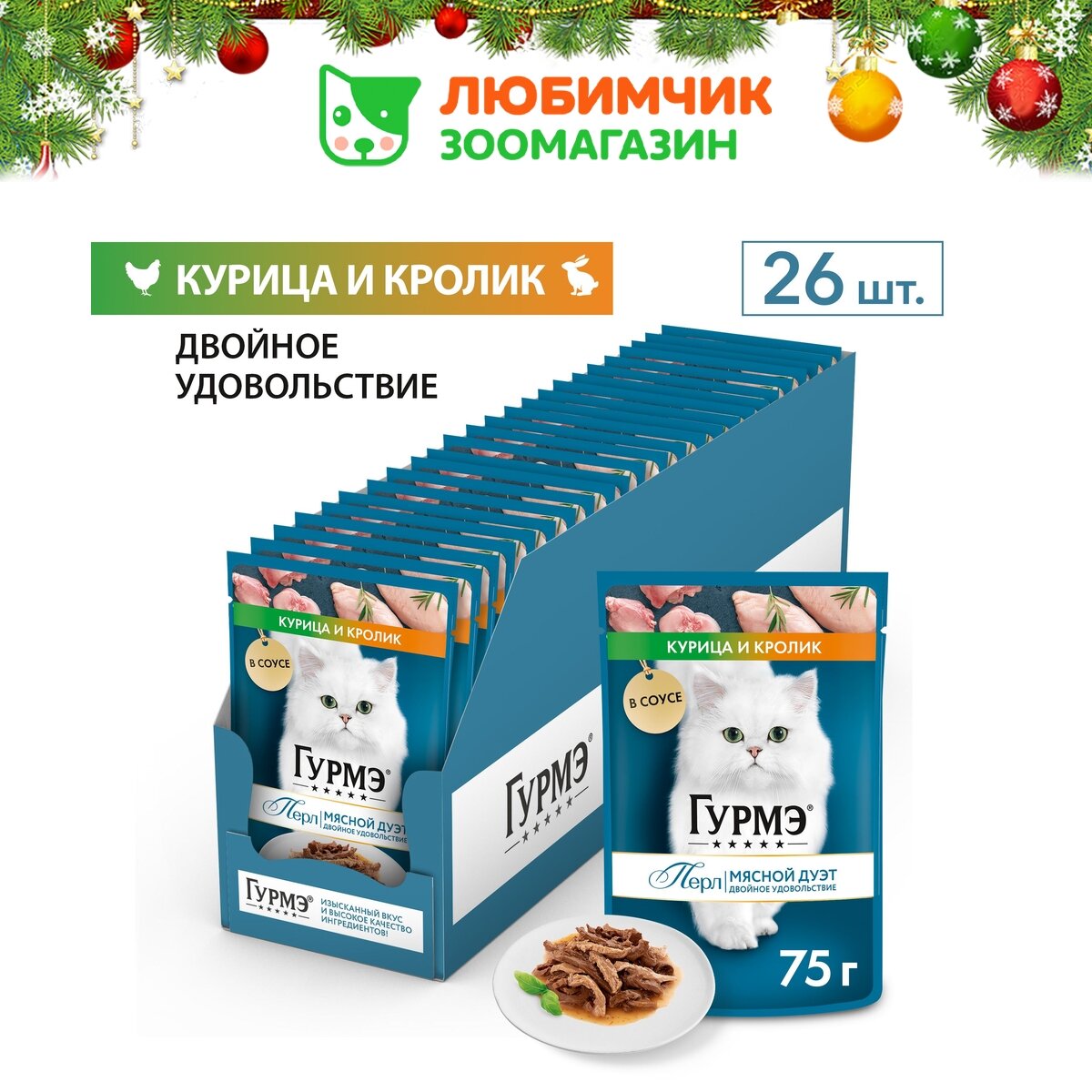 Влажный корм для кошек Гурмэ Perle Мясной Дуэт c курицей и кроликом 26 шт. х 75 г (кусочки в соусе)