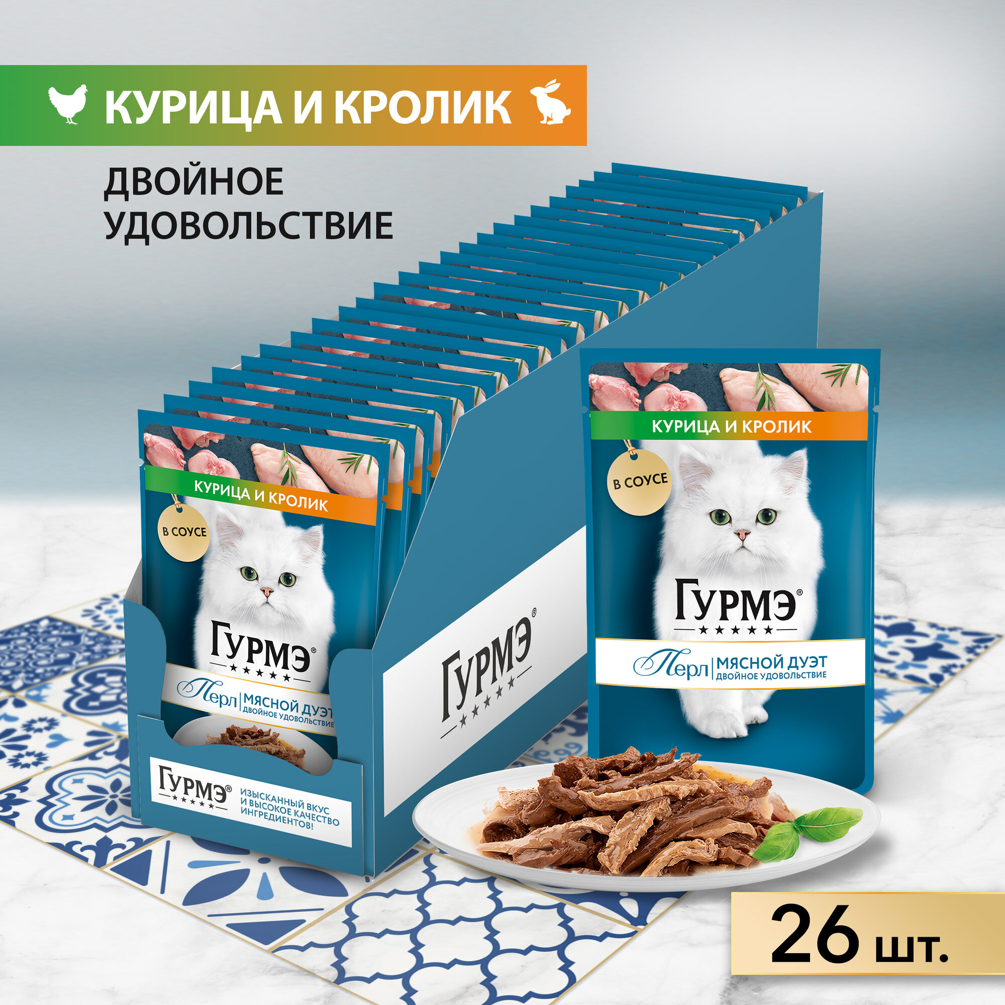 Купить Гурмэ Перл Мясной Дуэт 75 г влажный корм для взрослых кошек, со вкусом кролик и курица, нежное филе в соусе, мясной дуэт х26 штук