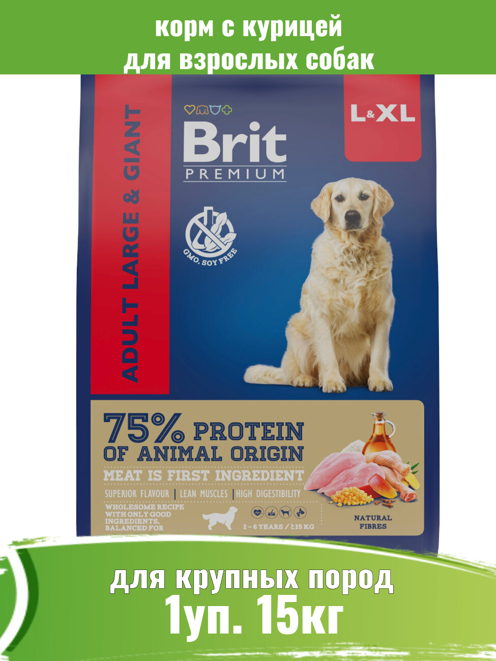 Сухой корм для собак Brit Premium Adult Large and Giant L+XL, курица 15 кг (для крупных пород)