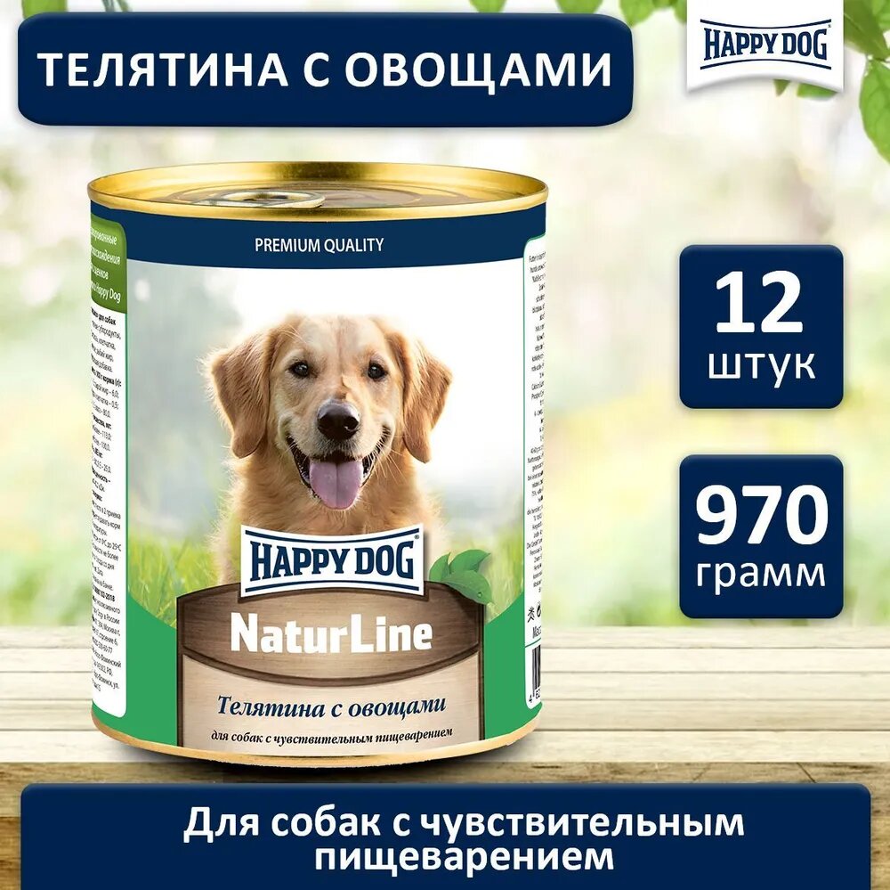 Влажный корм для собак Happy Dog NaturLine, телятина, с овощами 12 шт. х 970 г