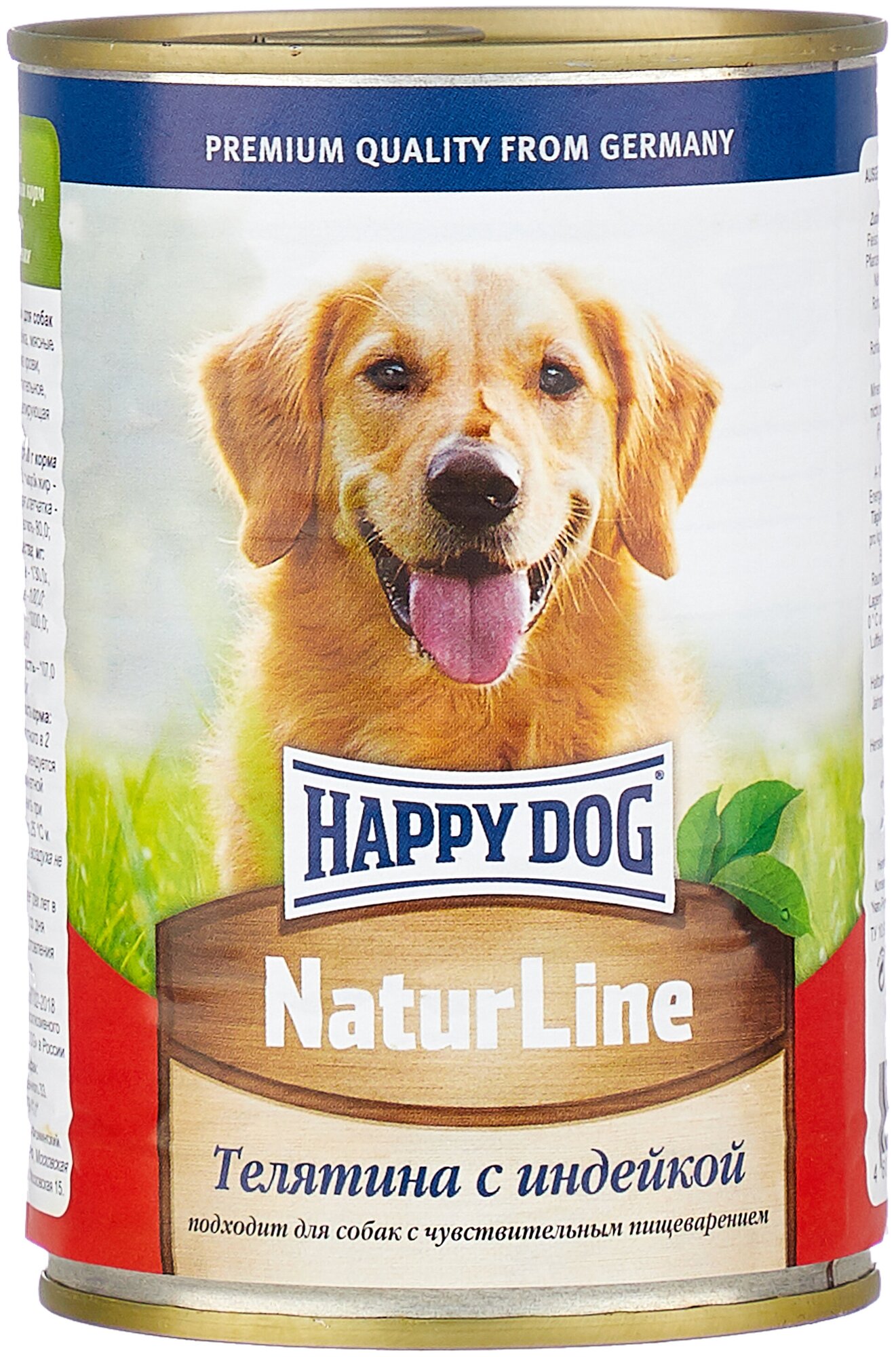 Влажный корм Happy Dog Natur Line для собак любых пород телятина с индейкой (12шт х 410гр)