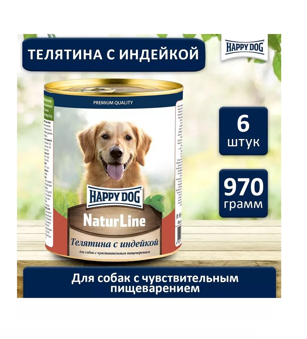 Купить Консервы для собак Happy Dog Natur Line Телятина с индейкой (970гр х 6шт)