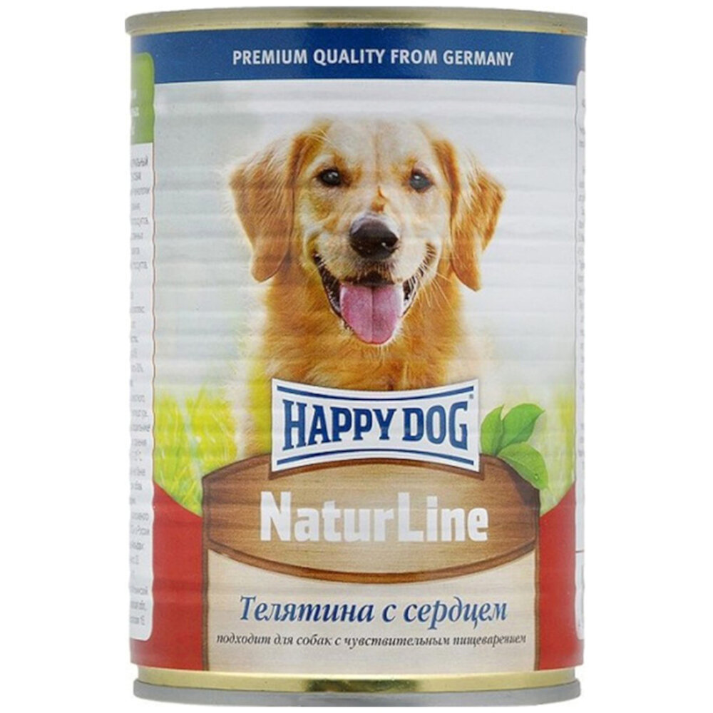 Влажный корм для собак Happy Dog NaturLine, телятина, сердце 12 шт. х 970 г