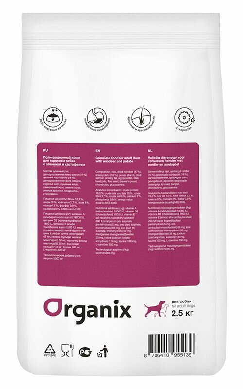 ORGANIX Сухой корм для собак оленина, с картофелем 1 уп. х 1 шт. х 2.5 кг