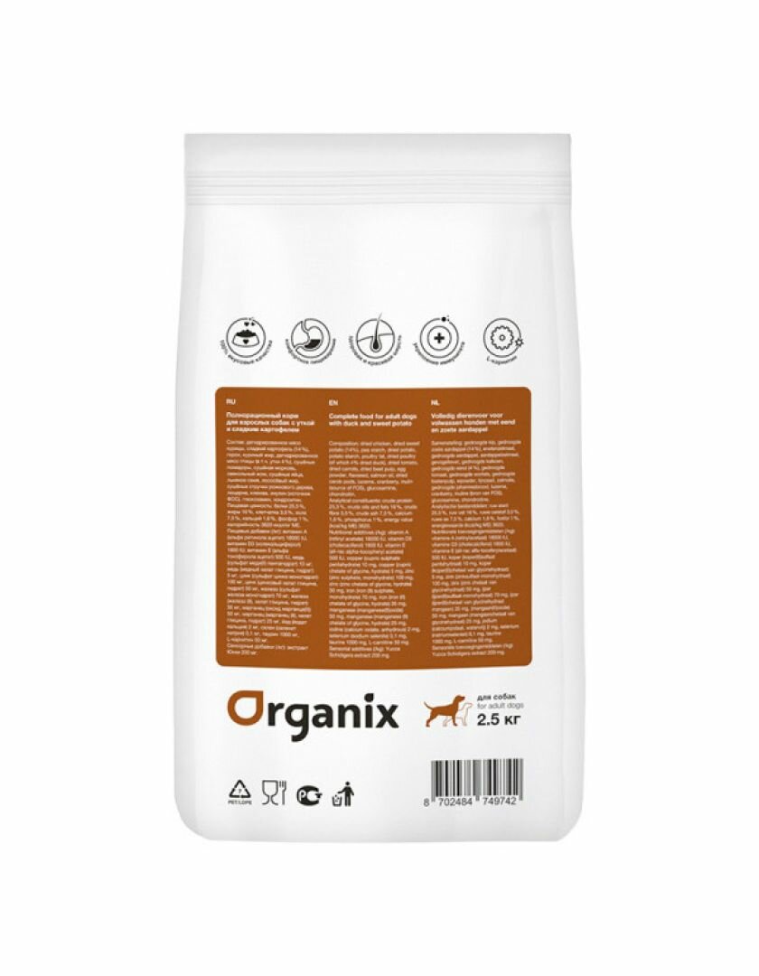 Корм сухой Organix для собак с уткой и картофелем, беззерновой, 2.5 кг